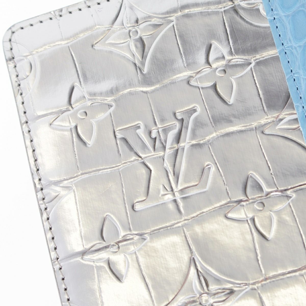 ルイヴィトン モノグラム ミラー ポルトフォイユ ブラザ クロコダイル 長財布 ウォレット N80345 ブルー×シルバー