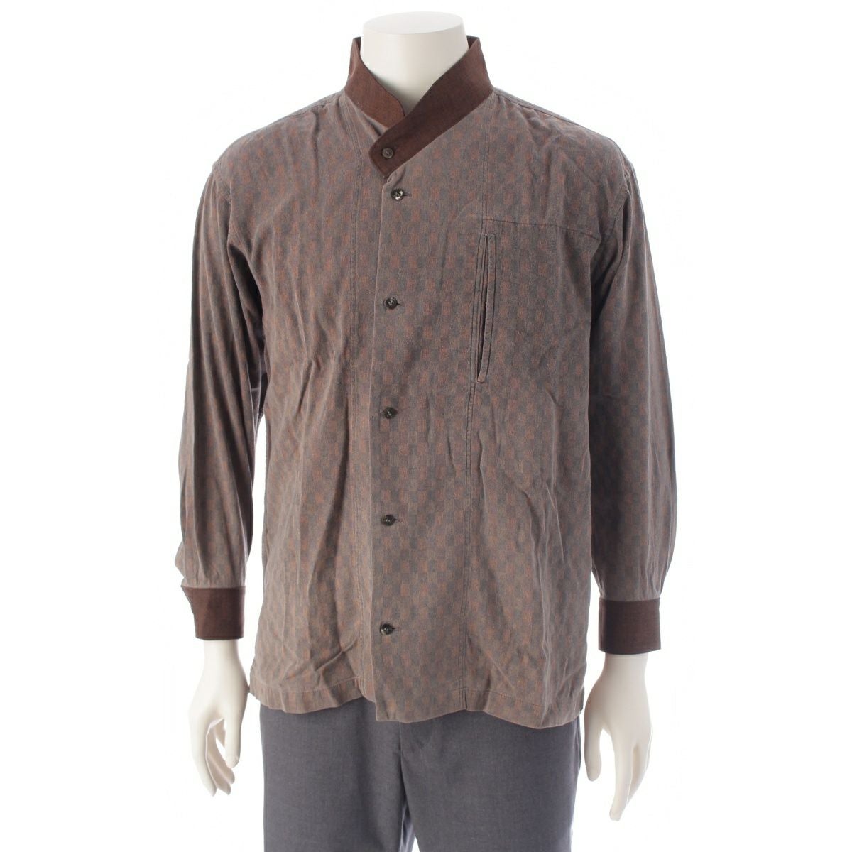 イッセイミヤケ 80s IM 着物襟 市松模様 長袖シャツ ブラウン S