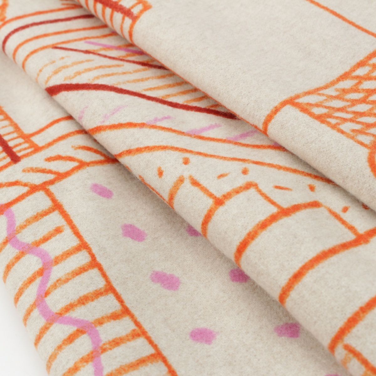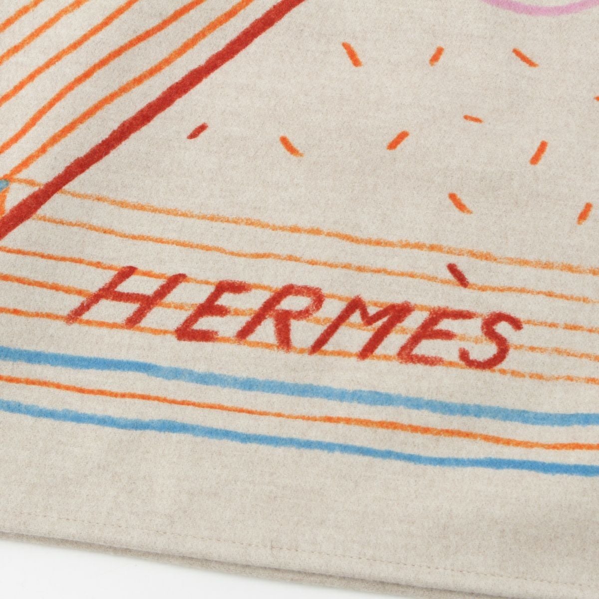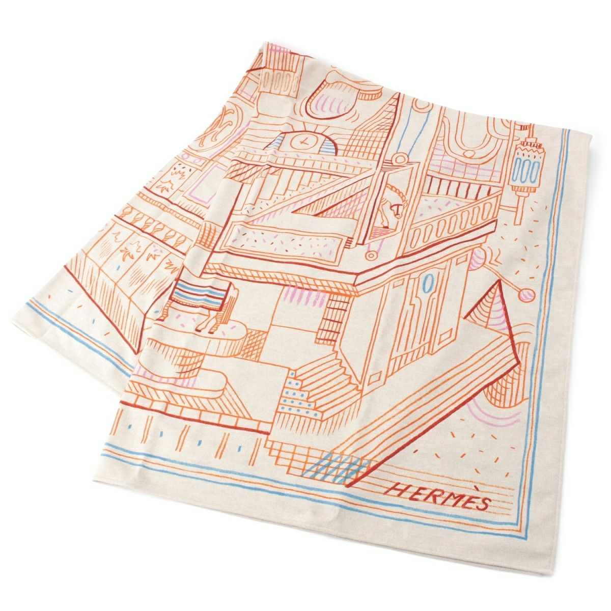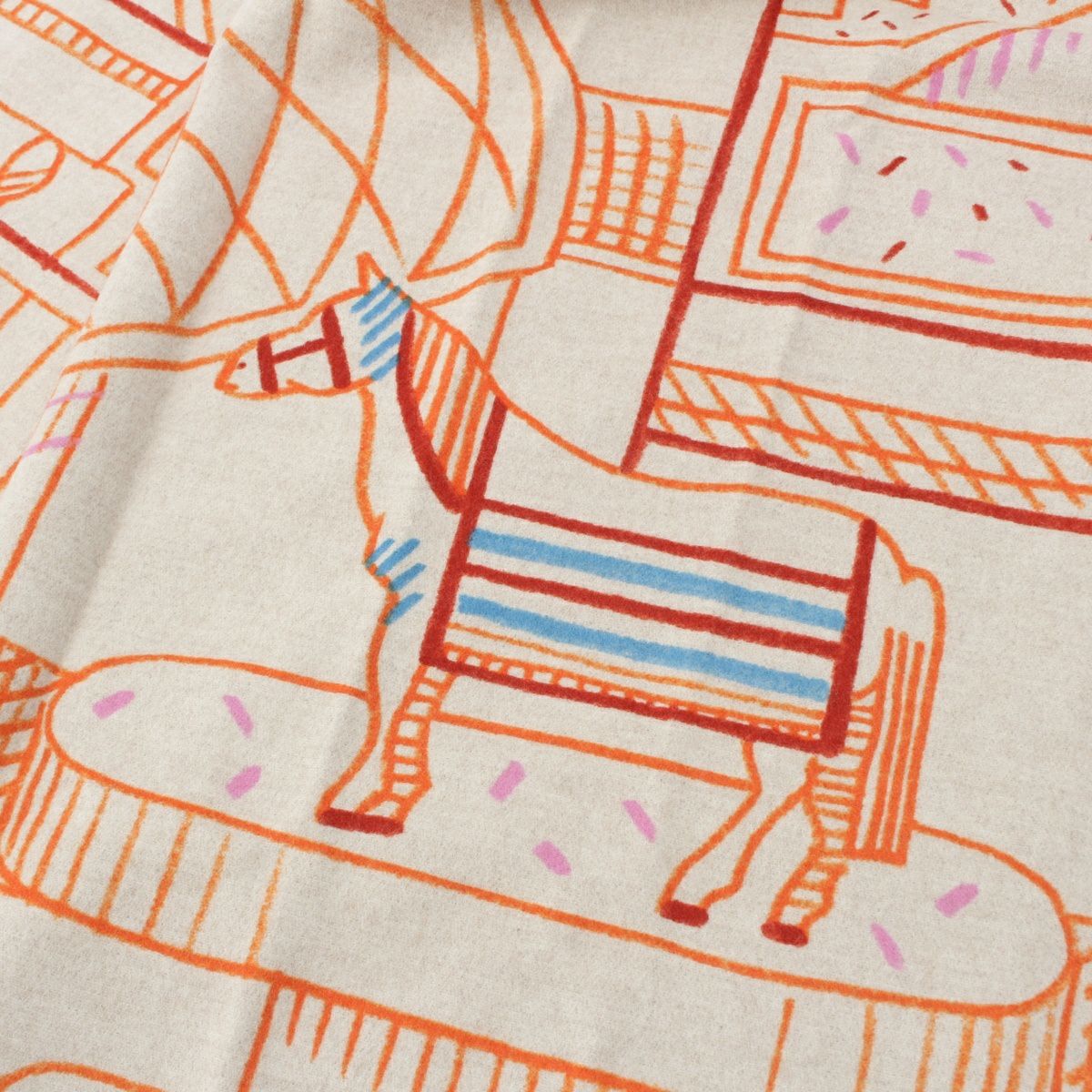 エルメス ウール カシミヤ エタージュ・デュ・フォーブル プリント ファッション雑貨 ブランケット ベージュ マルチカラー