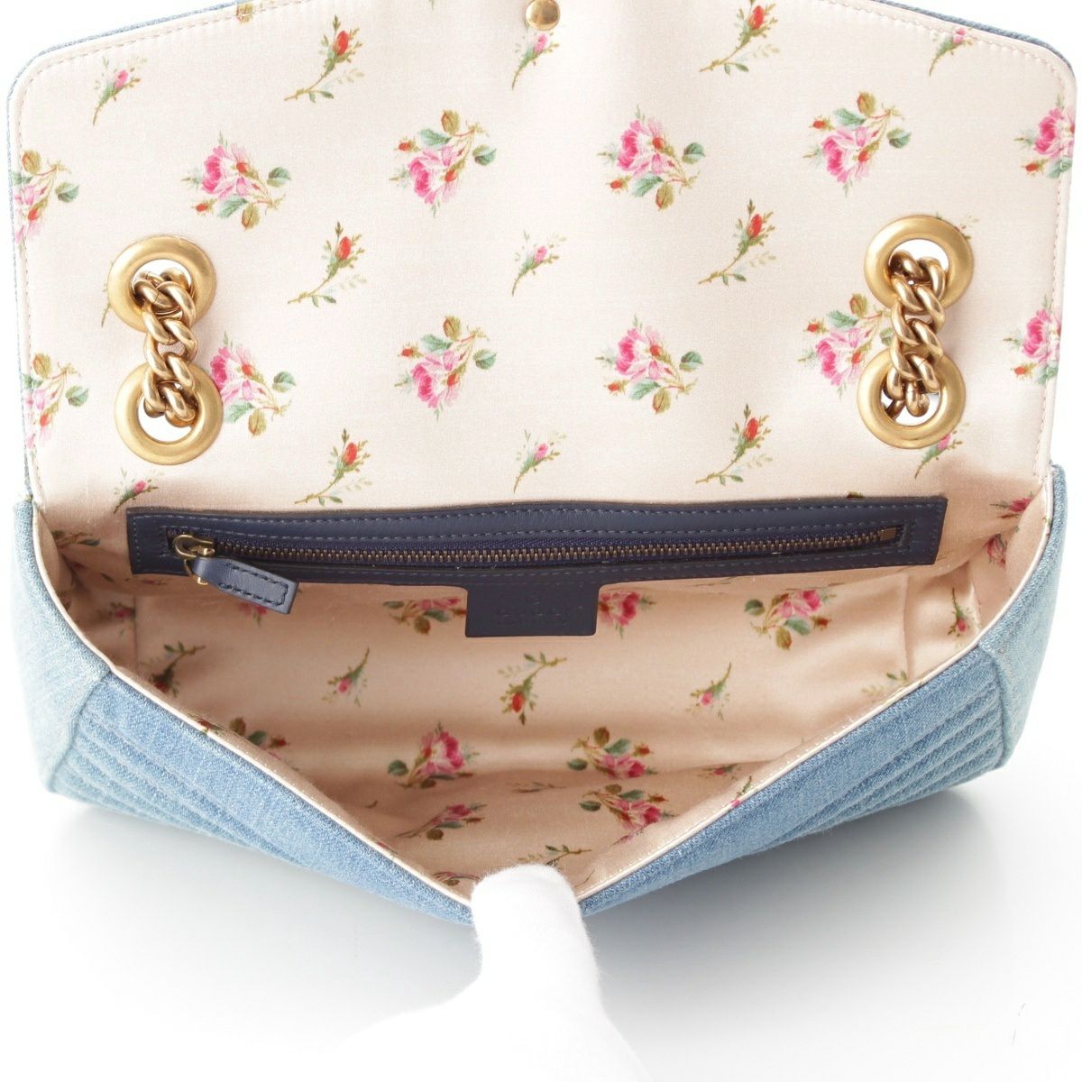 グッチ GGマーモント デニム パール チェーン ショルダーバッグ 443497 ブルー