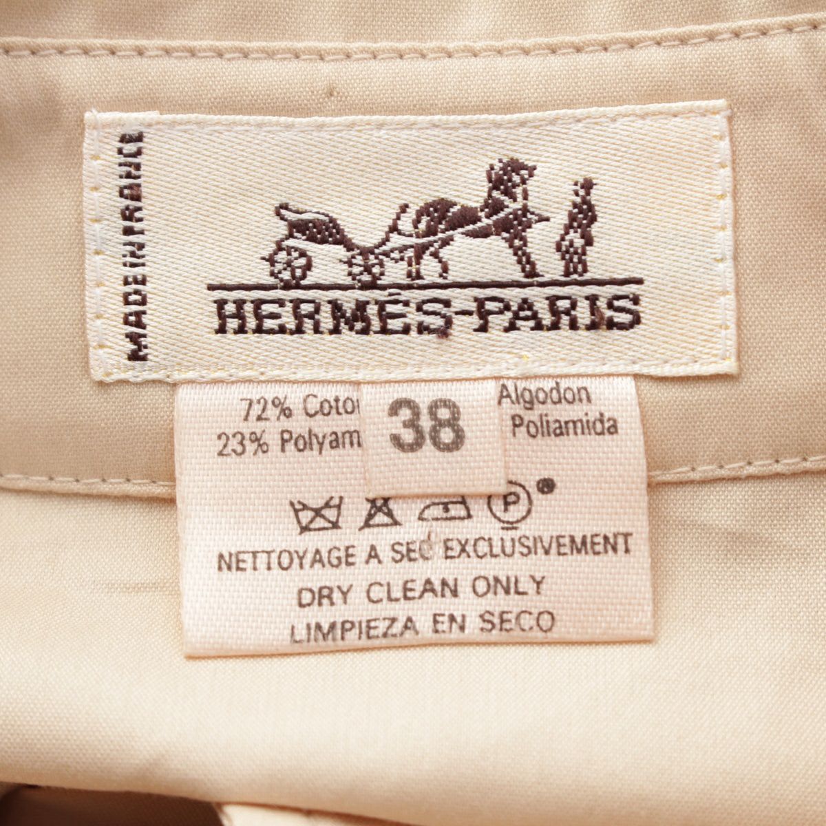 エルメス コットン ヴィンテージ セリエボタン ビッグボタンデザイン 半袖シャツ トップス ベージュ オフホワイト系 38