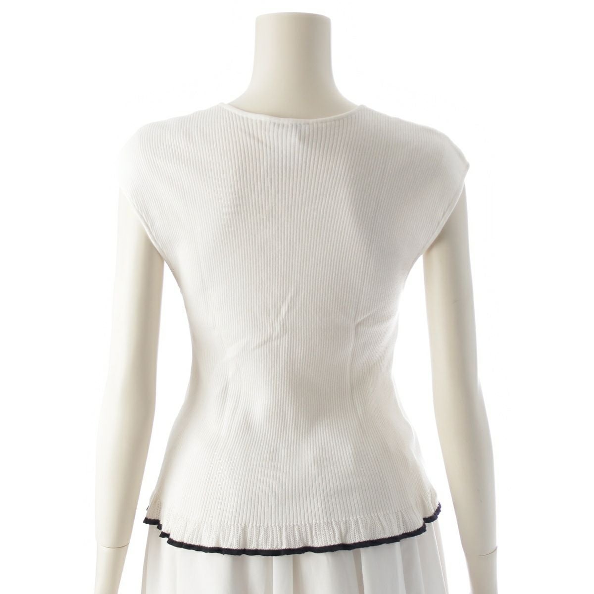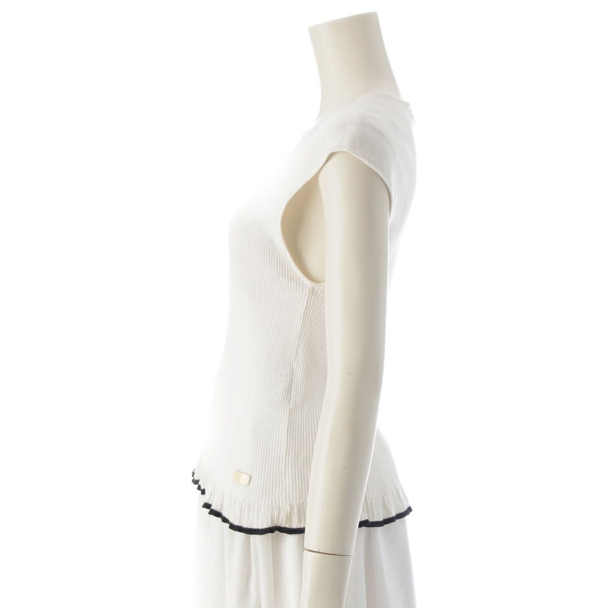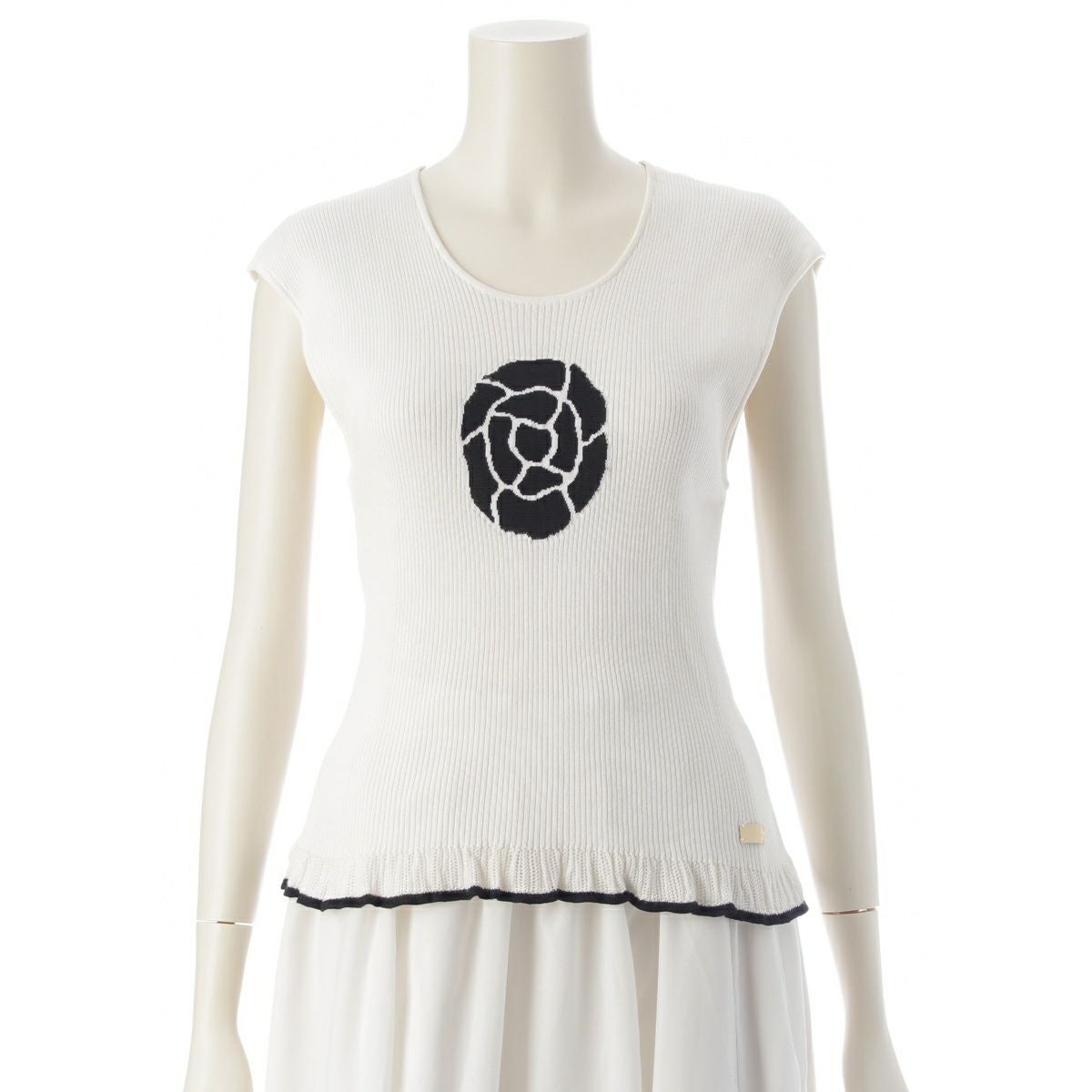 シャネル 01P コットン カメリア フリル ノースリーブ ニット ホワイト 42