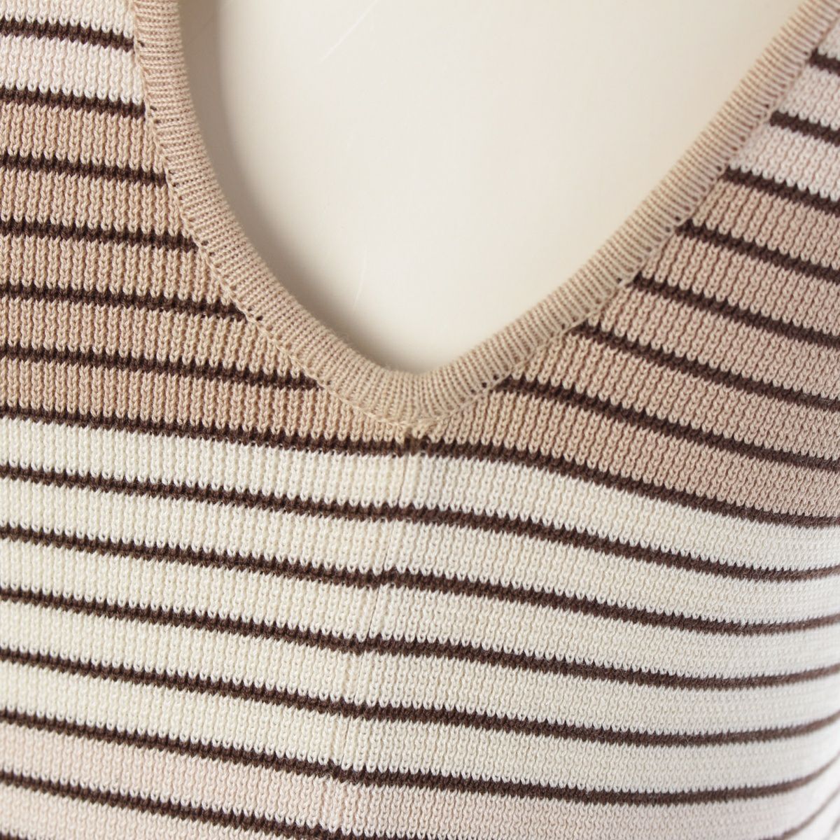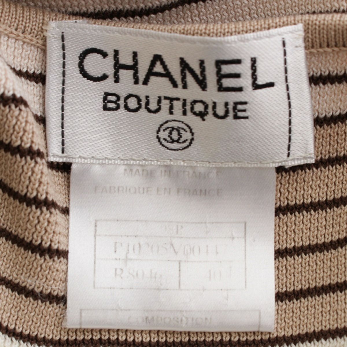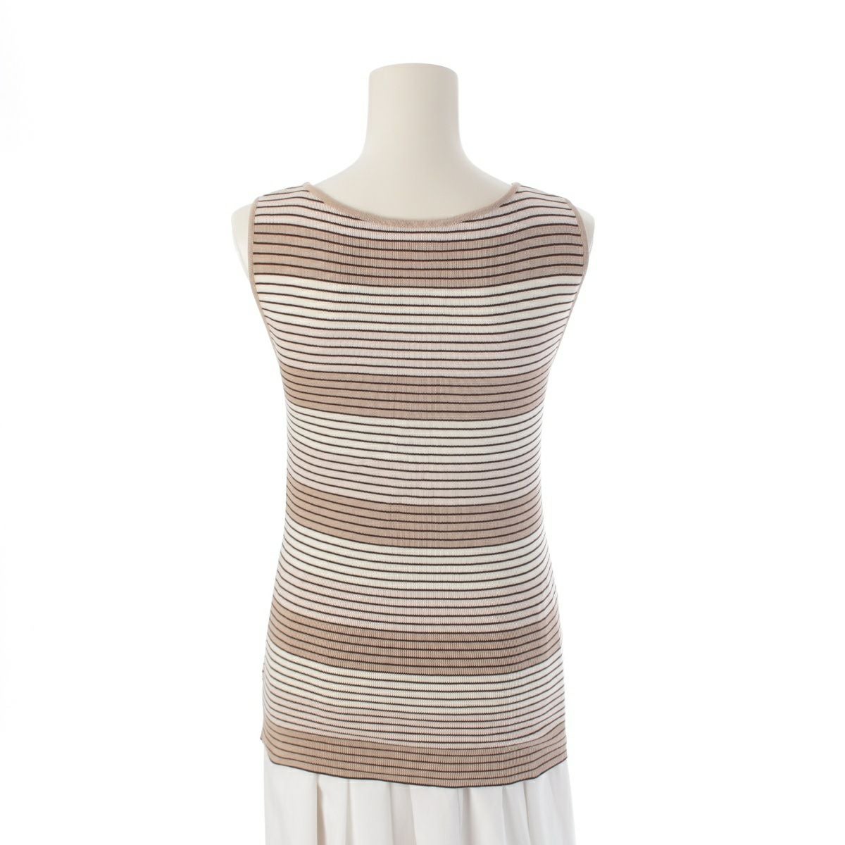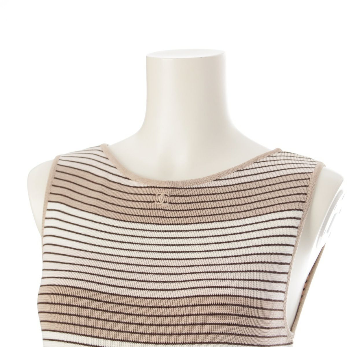シャネル 98P コットン ココマーク刺繍 ボーダー ニット タンクトップ P10205 ベージュ×ブラウン 40