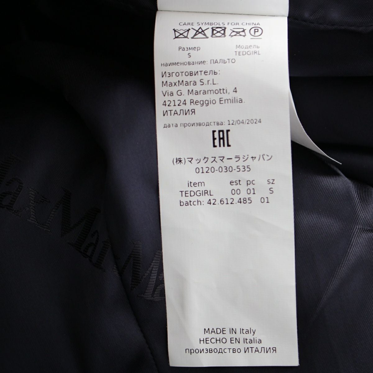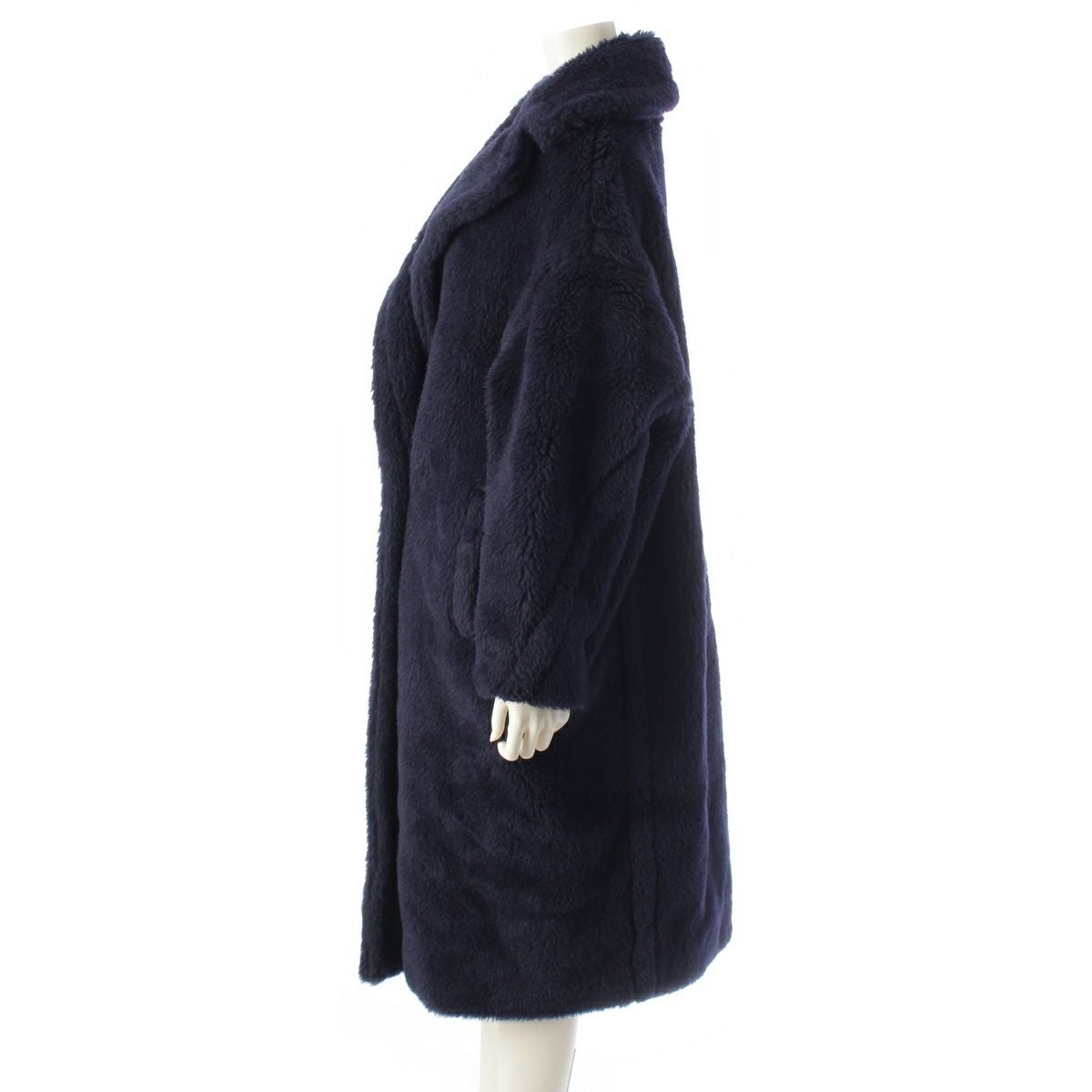マックスマーラ テディベア ウール×アルパカ×シルク ボア ロング コート アウター ネイビー S