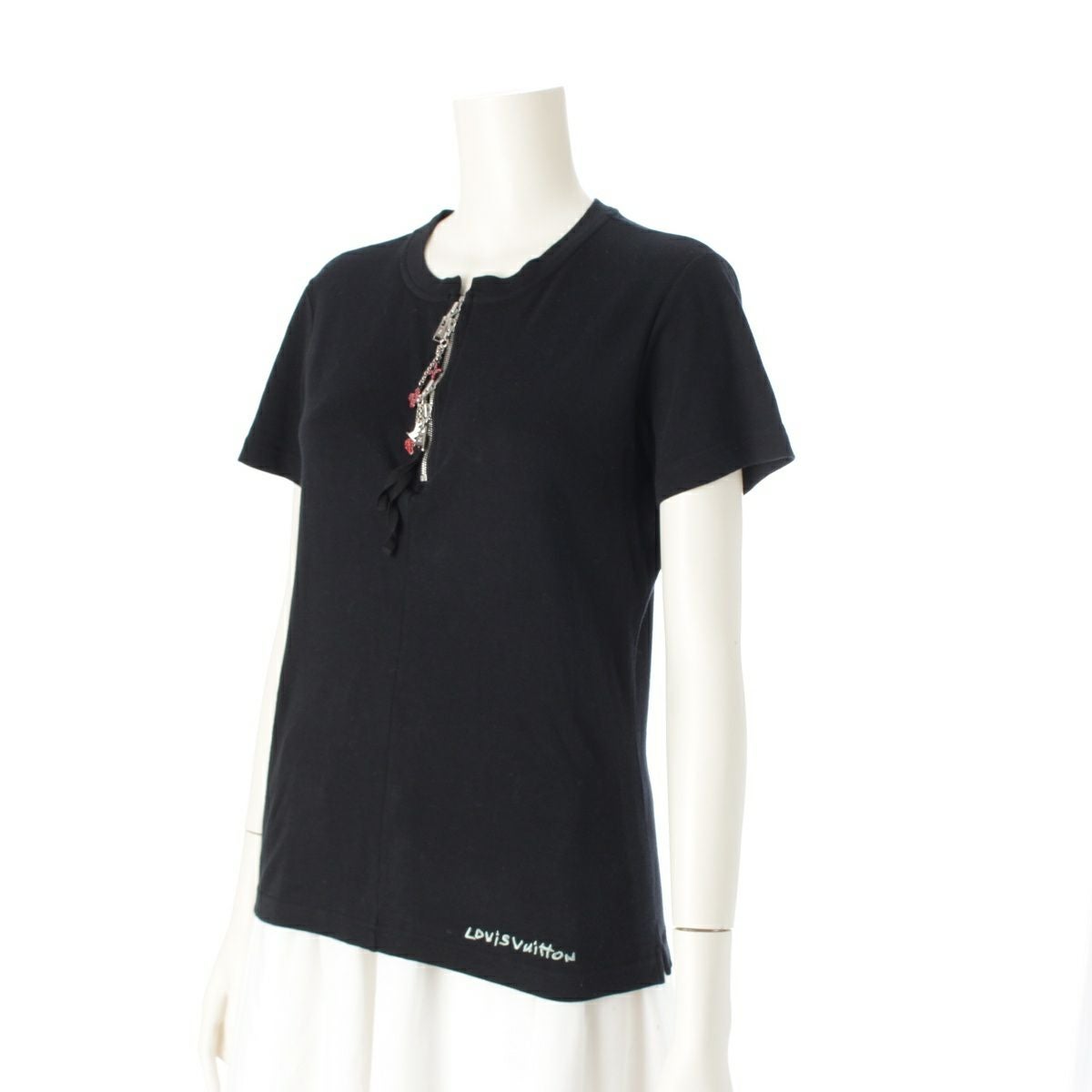ルイヴィトン 07SS コットン グラフィティ チャーム 刺繍 ハーフジップ 半袖 カットソー トップス ブラック M