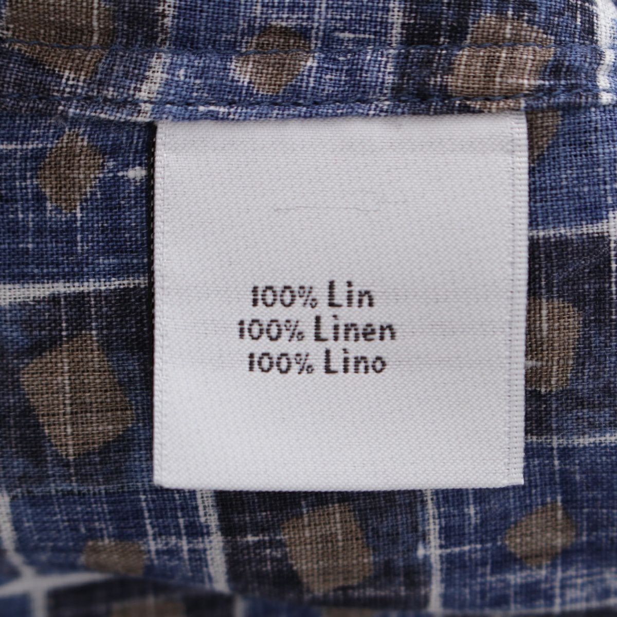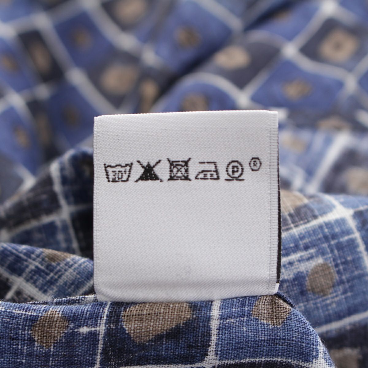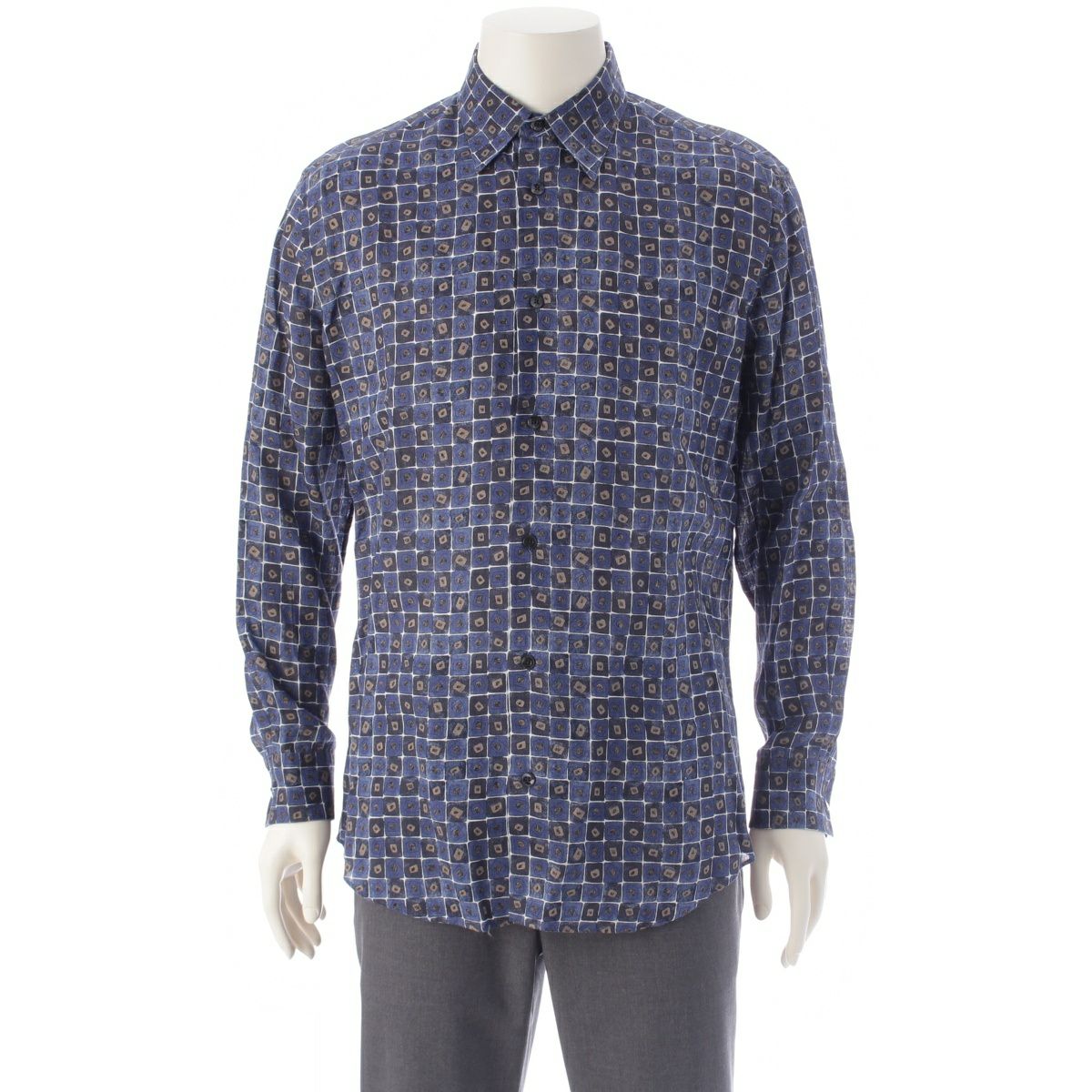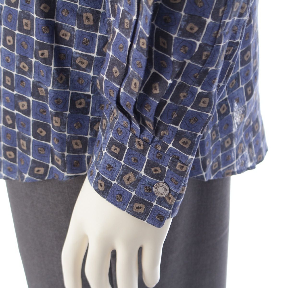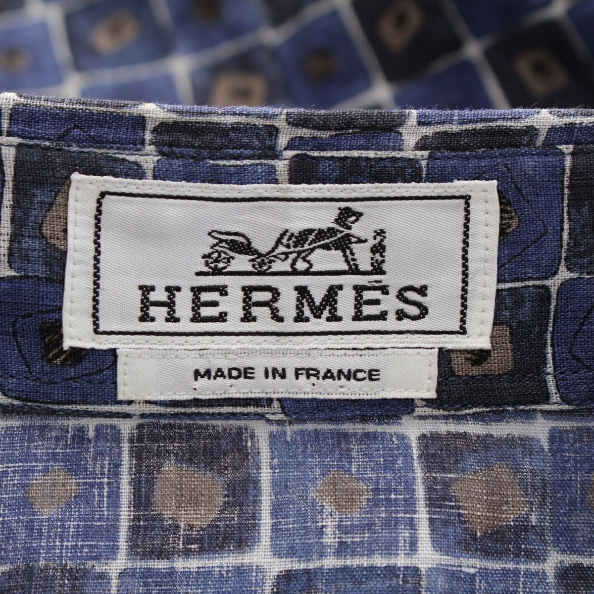 エルメス リネン セリエボタン チェック 総柄 長袖シャツ ブルー