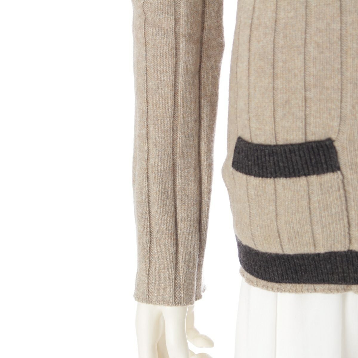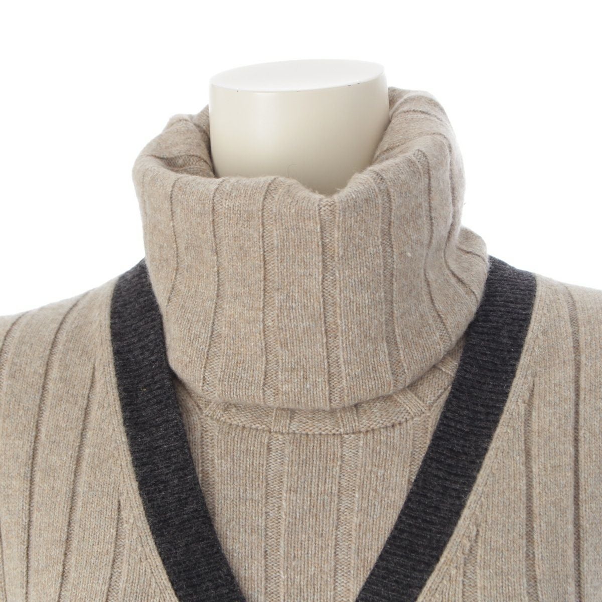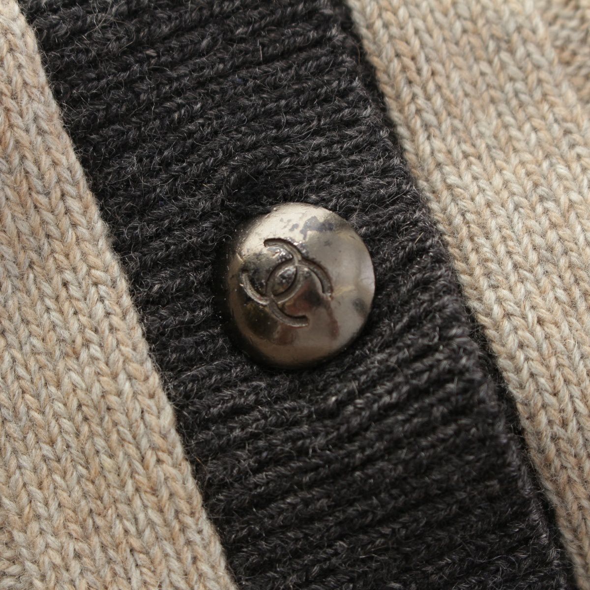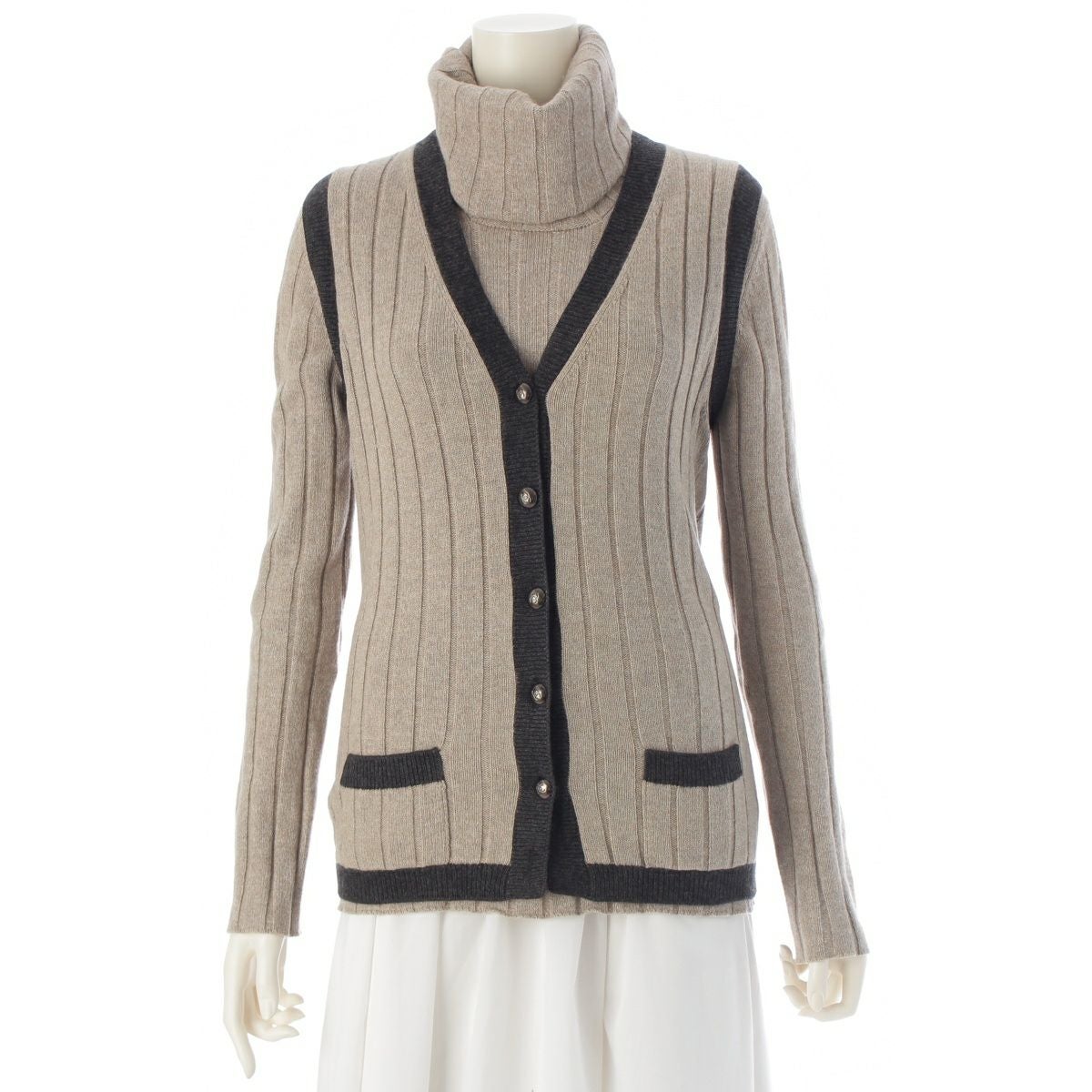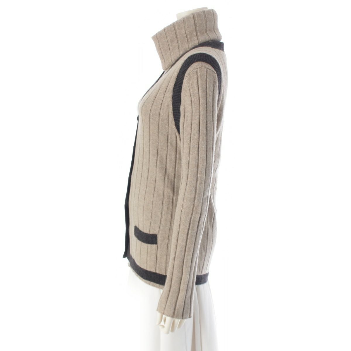 シャネル 97A カシミヤ 100% ニット ハイネック トップス 前開き ベスト アンサンブル P09121 ベージュ ブラック 38