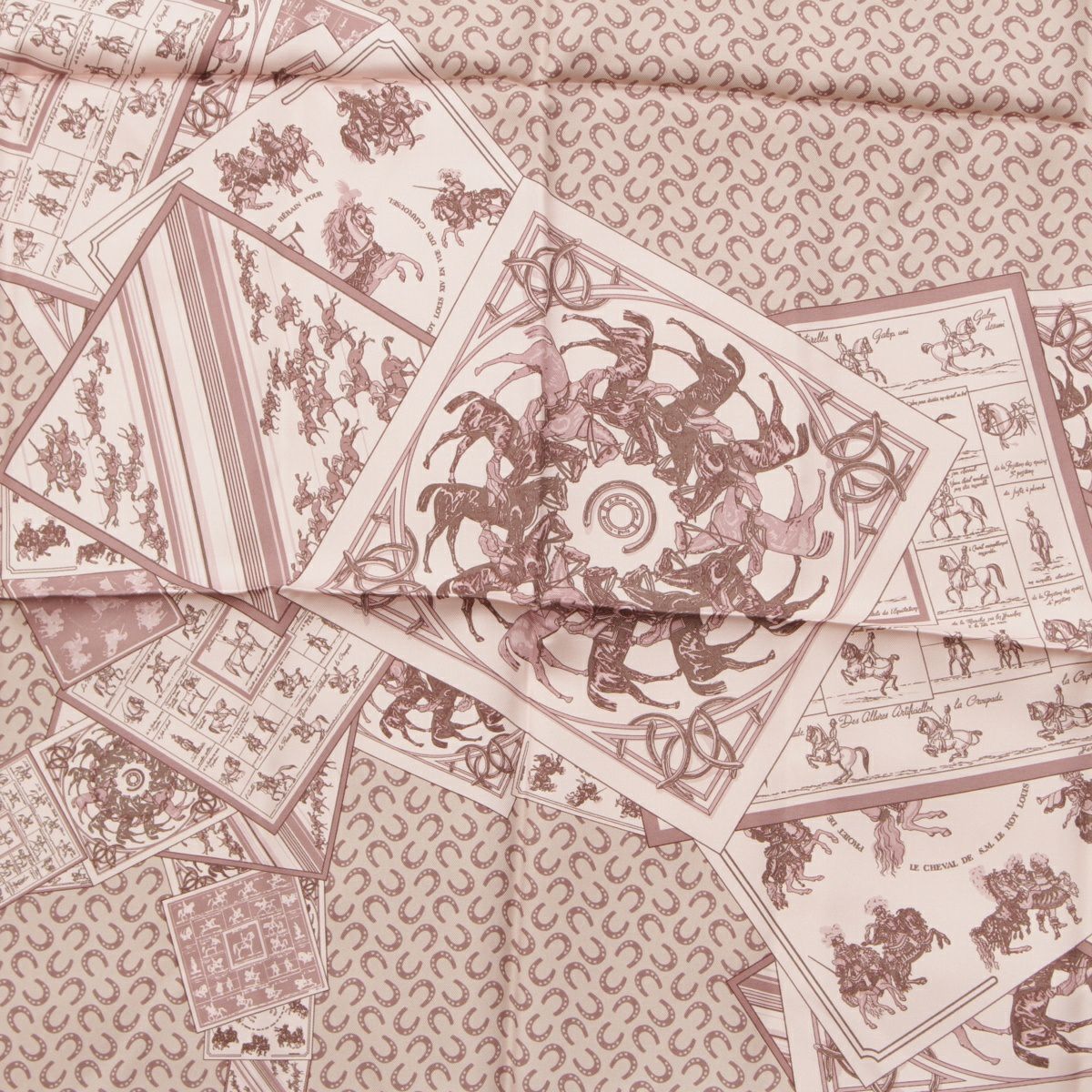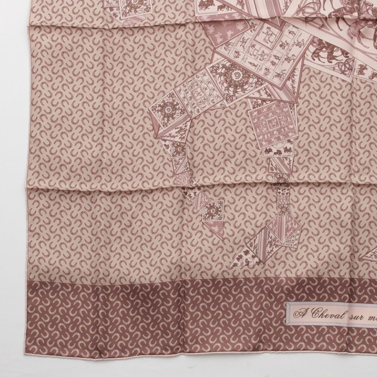 エルメス カレ90 A Cheval sur mon Carre カレの馬に乗って シルク スカーフ ピンクベージュ