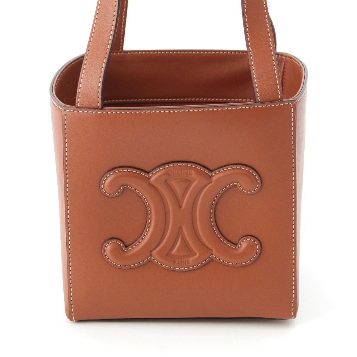 セリーヌ レザー トリオンフ Cube キューブ トートバッグ ポーチ付き タン