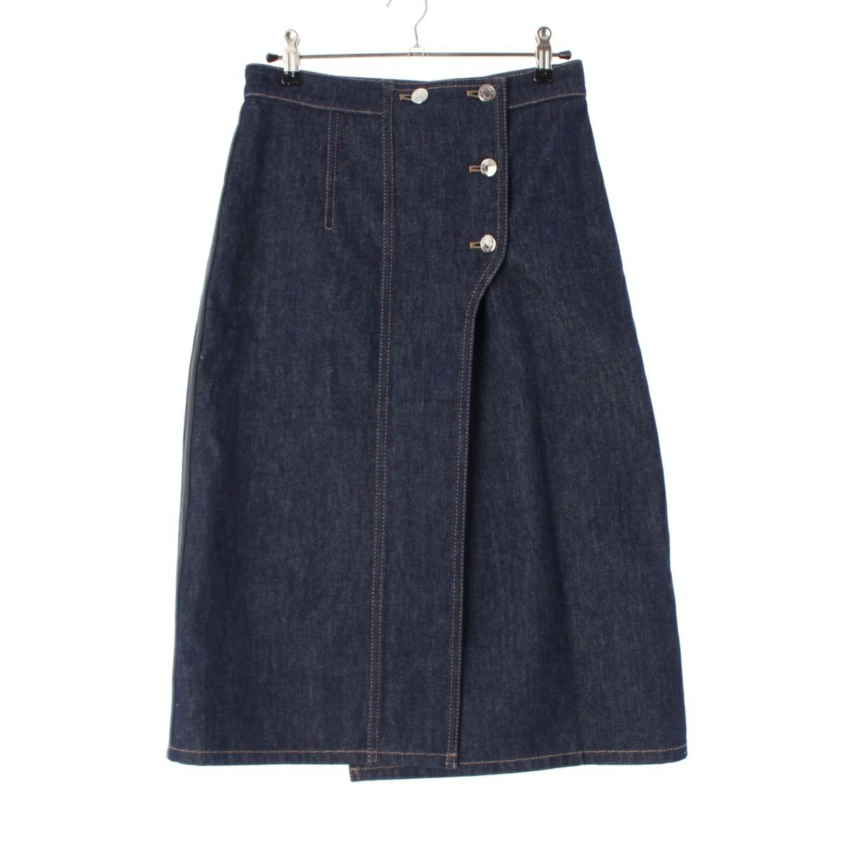 エルメス 21年 セリエボタン デニム 巻きスカート ラップスカート スカート インディゴ 34
