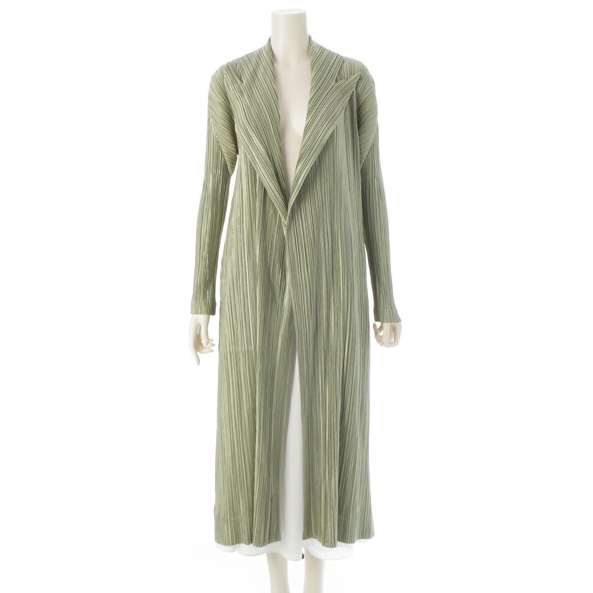 プリーツプリーズ 襟付き 長袖 ロング カーディガン 前開き ライトグリーン 4