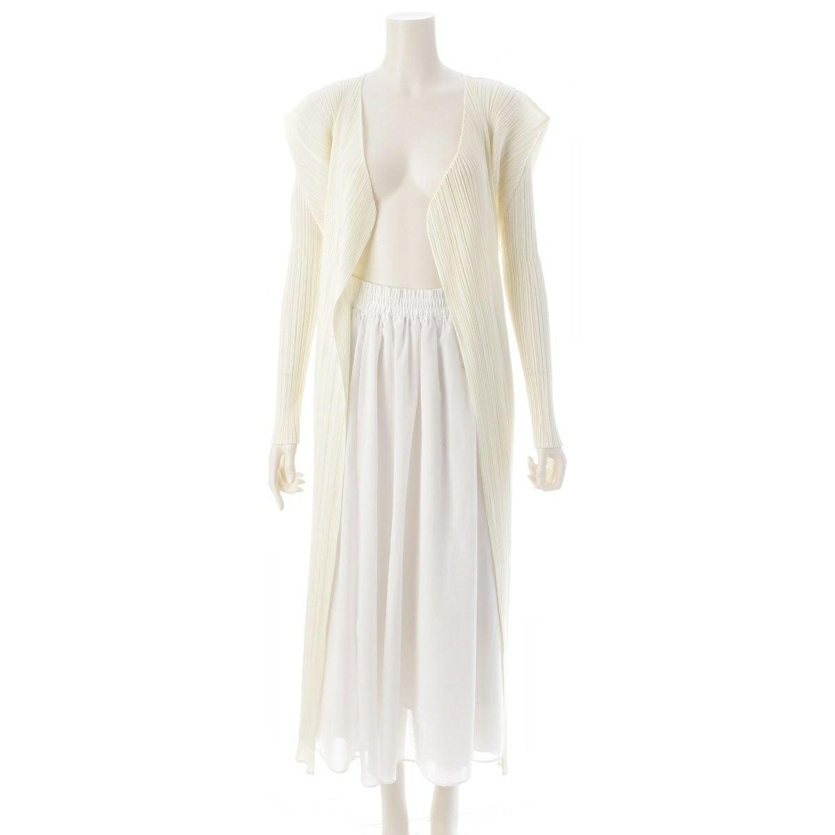 プリーツプリーズ イッセイミヤケ ボタンレス ロング 長袖 カーディガン トップス PP04-JH617 アイボリー 4
