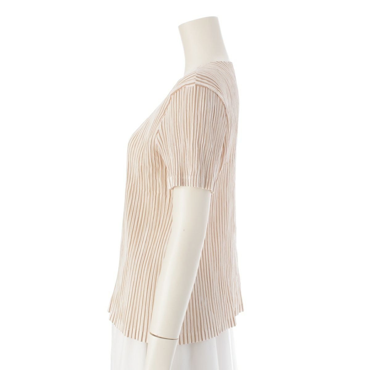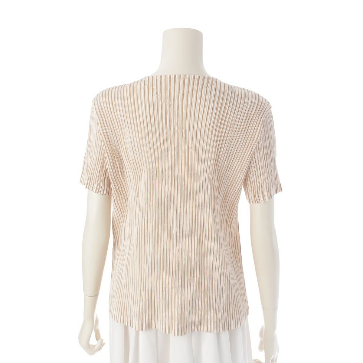 イッセイミヤケ プリーツ 半袖クルーネック トップス ストライプ柄 IM22FJ520 ホワイト ベージュ 3