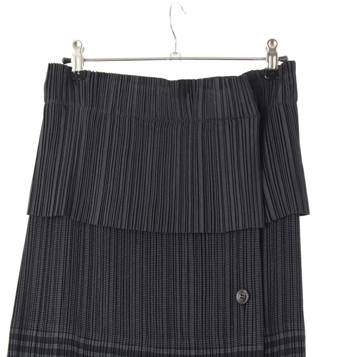 イッセイミヤケ 1998AW プリーツ 切替 ボタンデザイン ロング スカート IM84-FG911 ブラック ダークグレー L