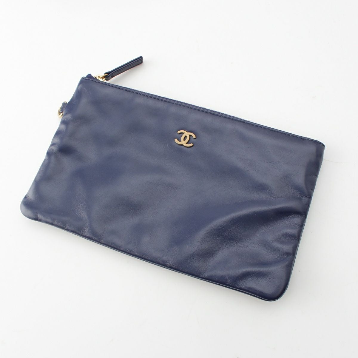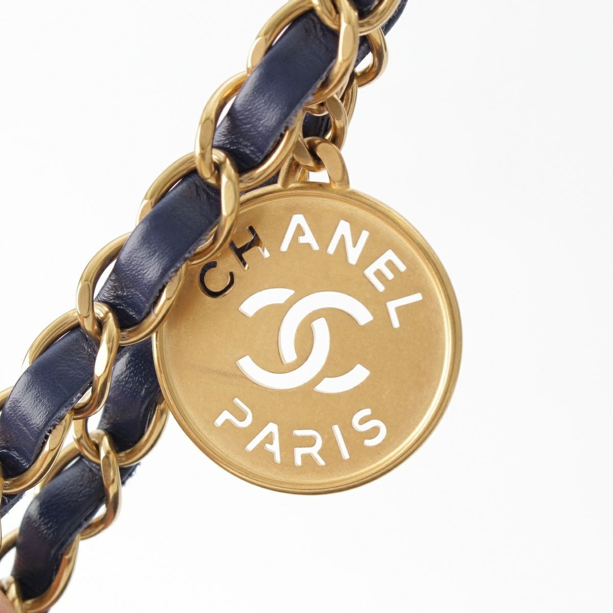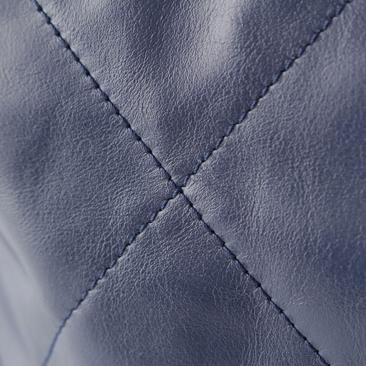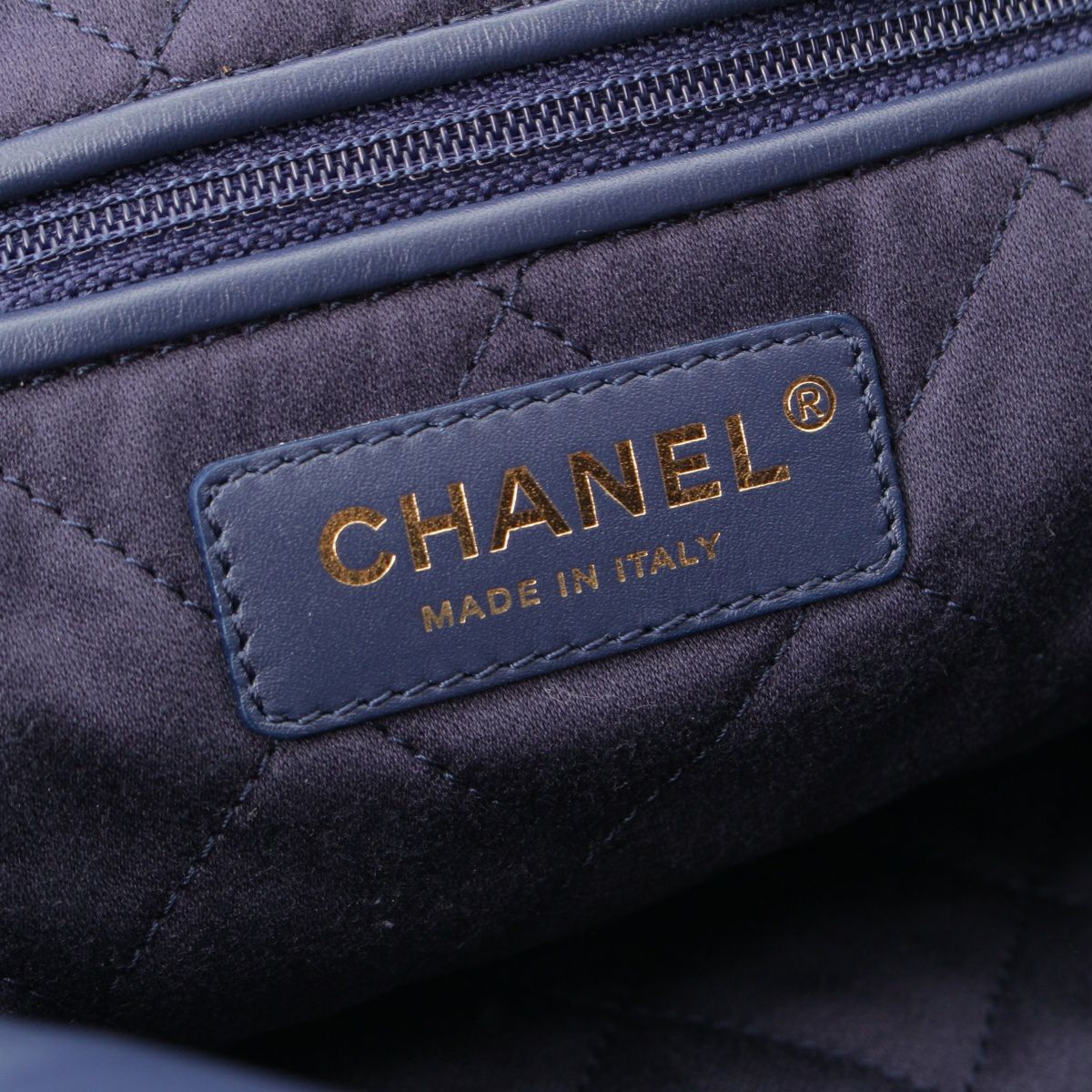 シャネル 22 シャイニーカーフスキン ラージ ロゴ チェーン ショルダーバッグ ネイビー