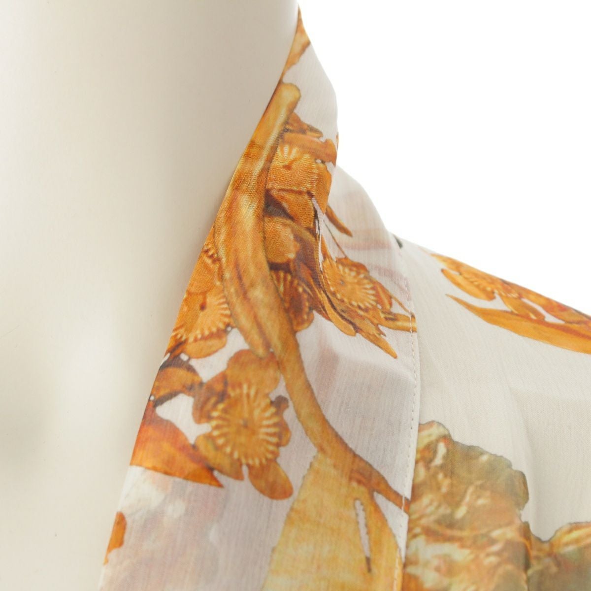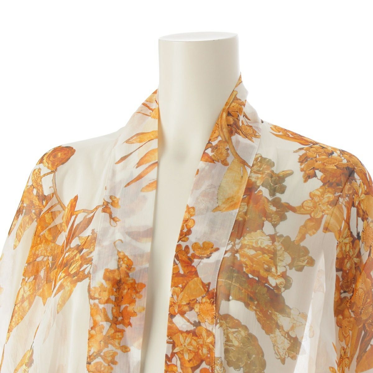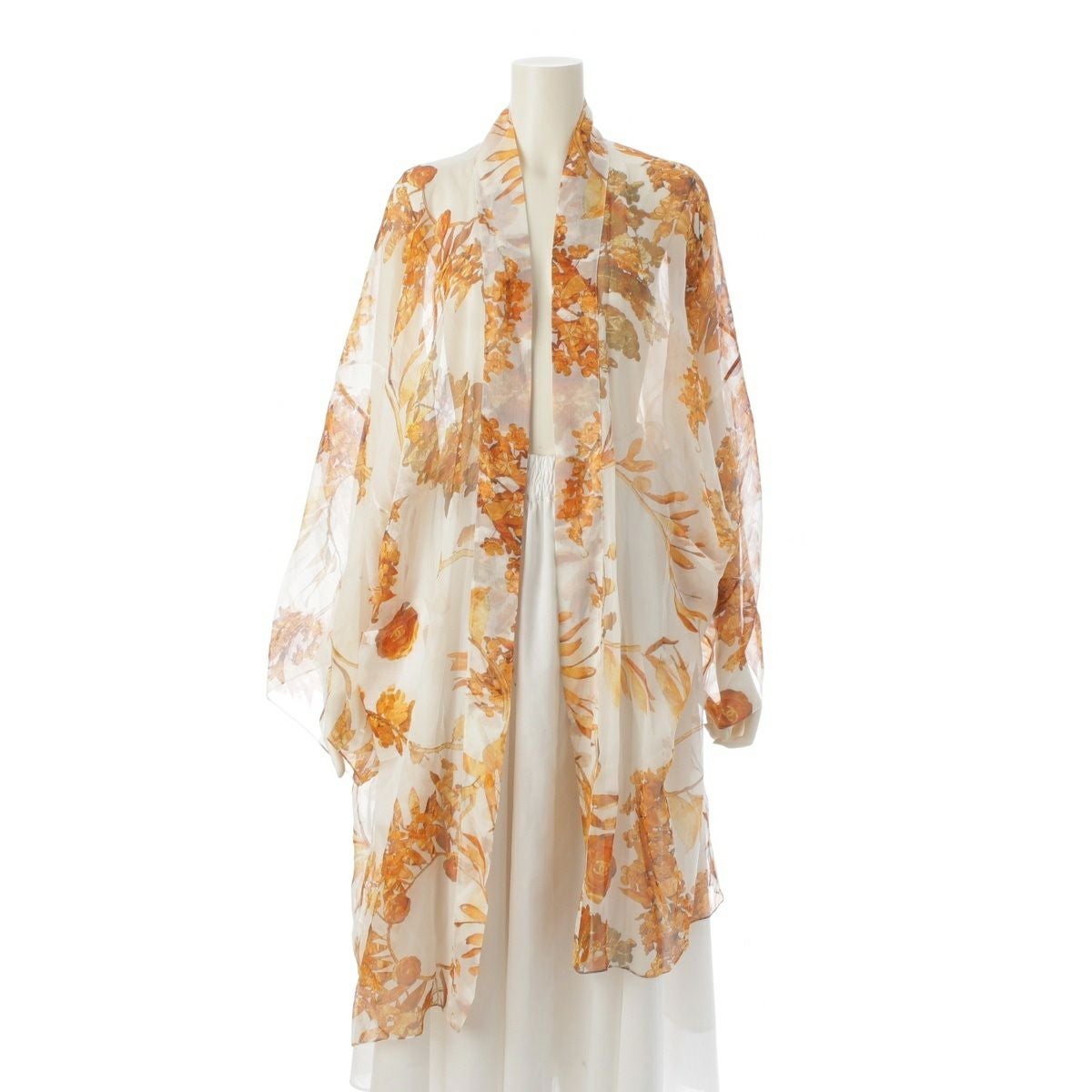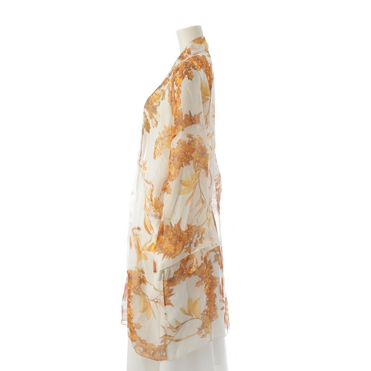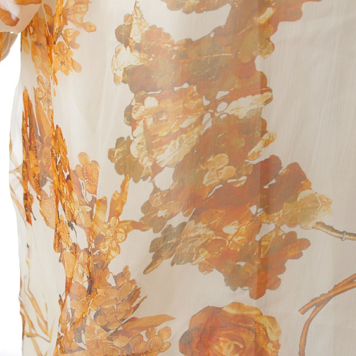 シャネル シルク ココマーク シースルー ロング カーディガン トップス P58015V43964 ホワイト×ゴールド 36
