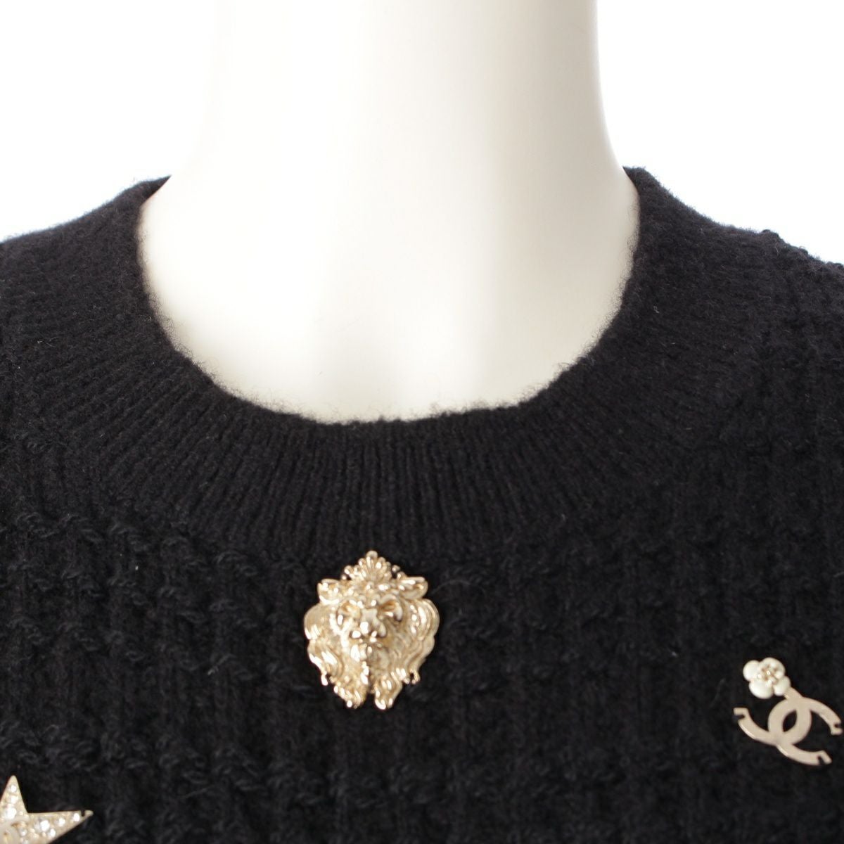 シャネル カシミヤ シルク混 マルチアイコン ニット セーター トップス P59735K07810 ブラック 36