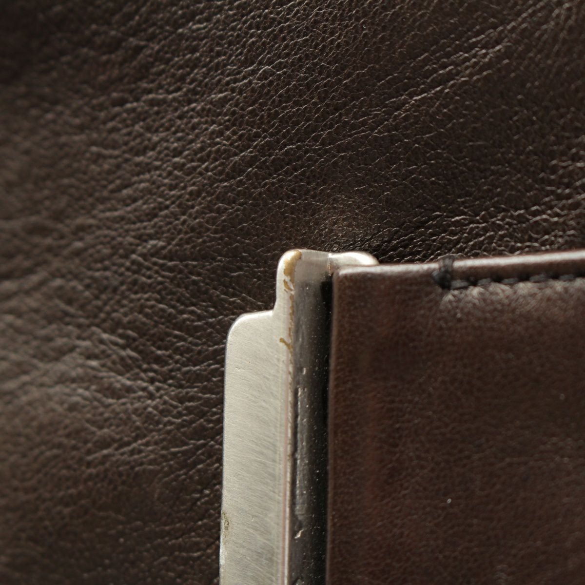 ダメージ箇所: 袖、右ポケットに汚れ、背面、ベルトバックルに傷、ボタン に欠け、