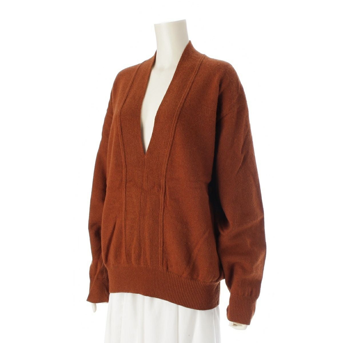 イッセイミヤケ ウール カシミヤ オープンネック Vネック セーター ME13KN034 ブラウン M