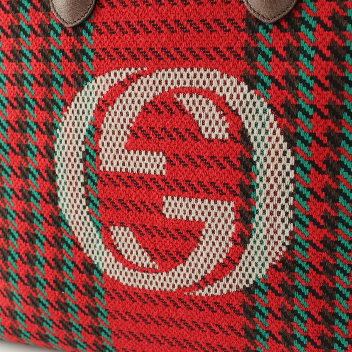 グッチ ウール レザー インターロッキングG ハウンドトゥース 2WAY ショルダー トートバッグ 644994 レッド ブラウン