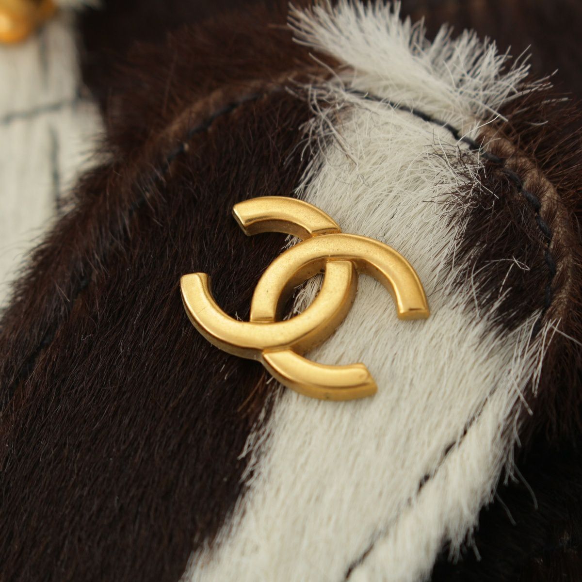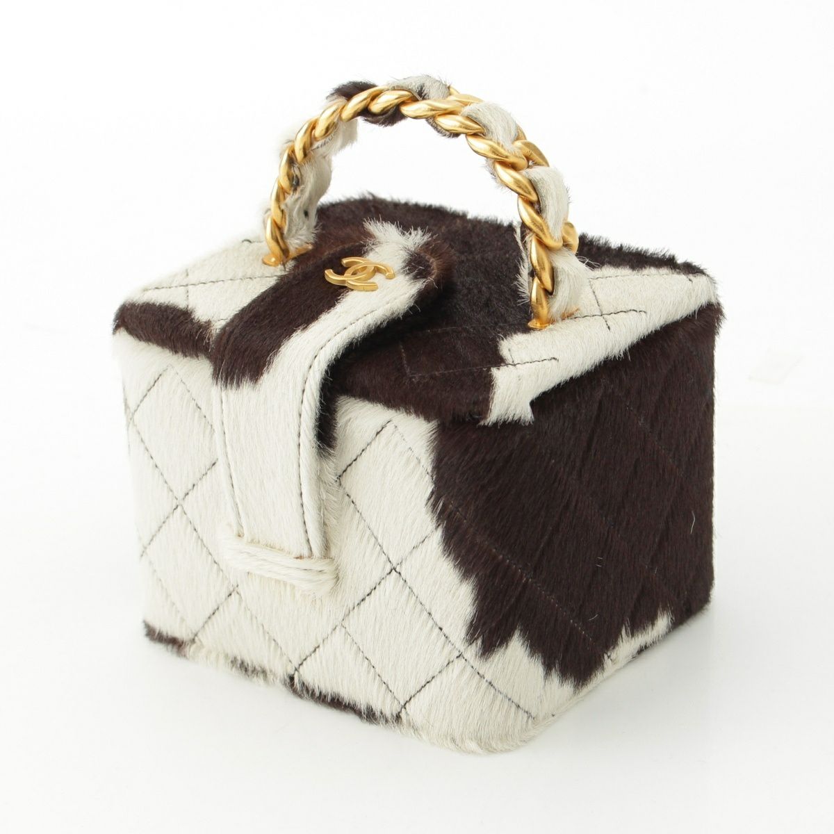 シャネル 95AW ハラコ ヴィンテージ ココマーク スクエア ミニ ハンドル バニティバッグ ブラウン ホワイト