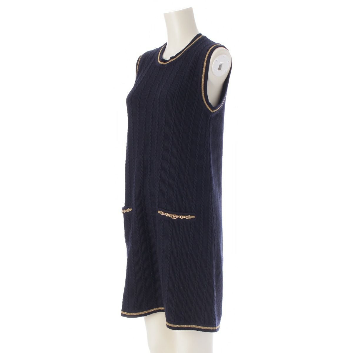 グッチ ウール×コットン ケーブルニット GGマーモント ノースリーブ ワンピース 658350 ブラック XS