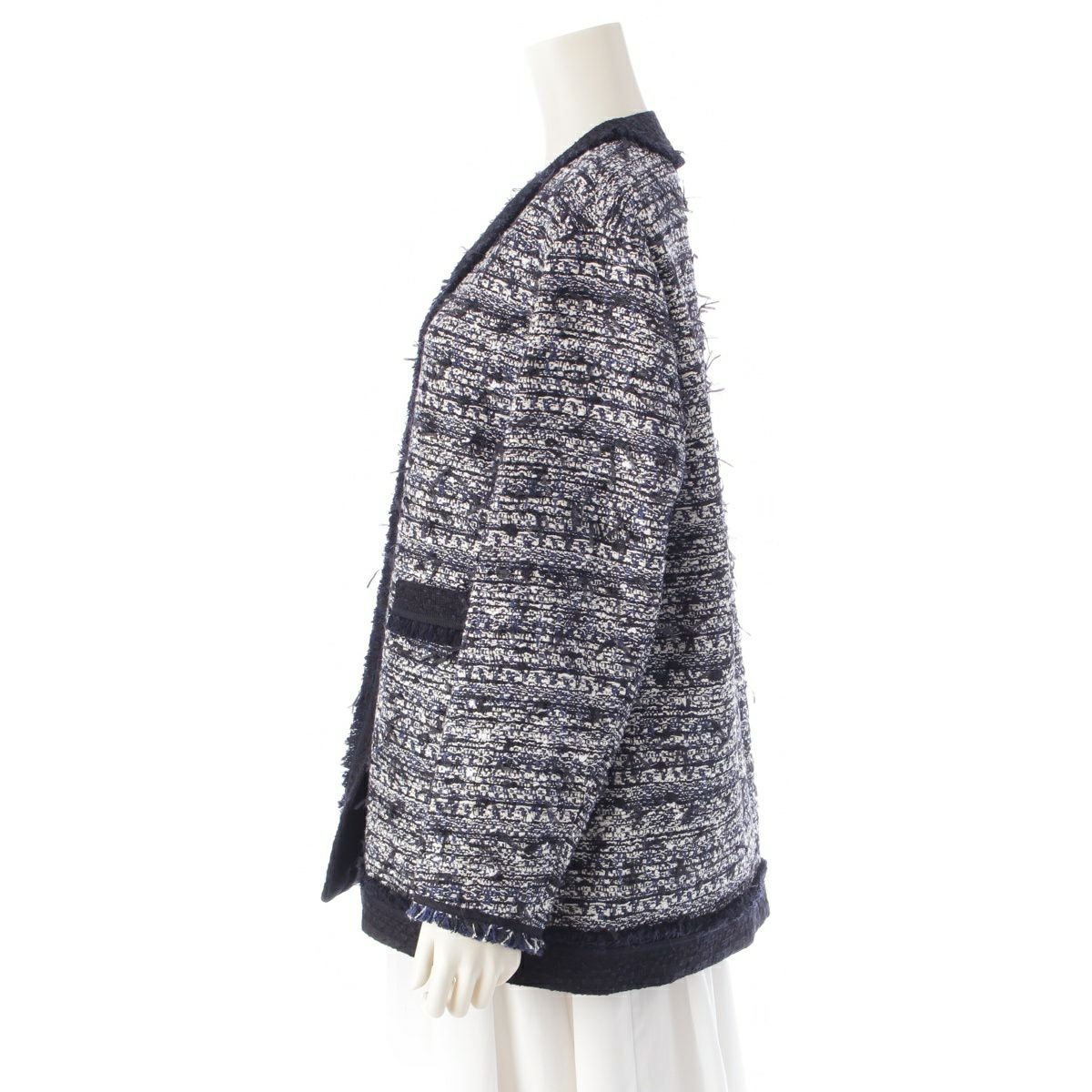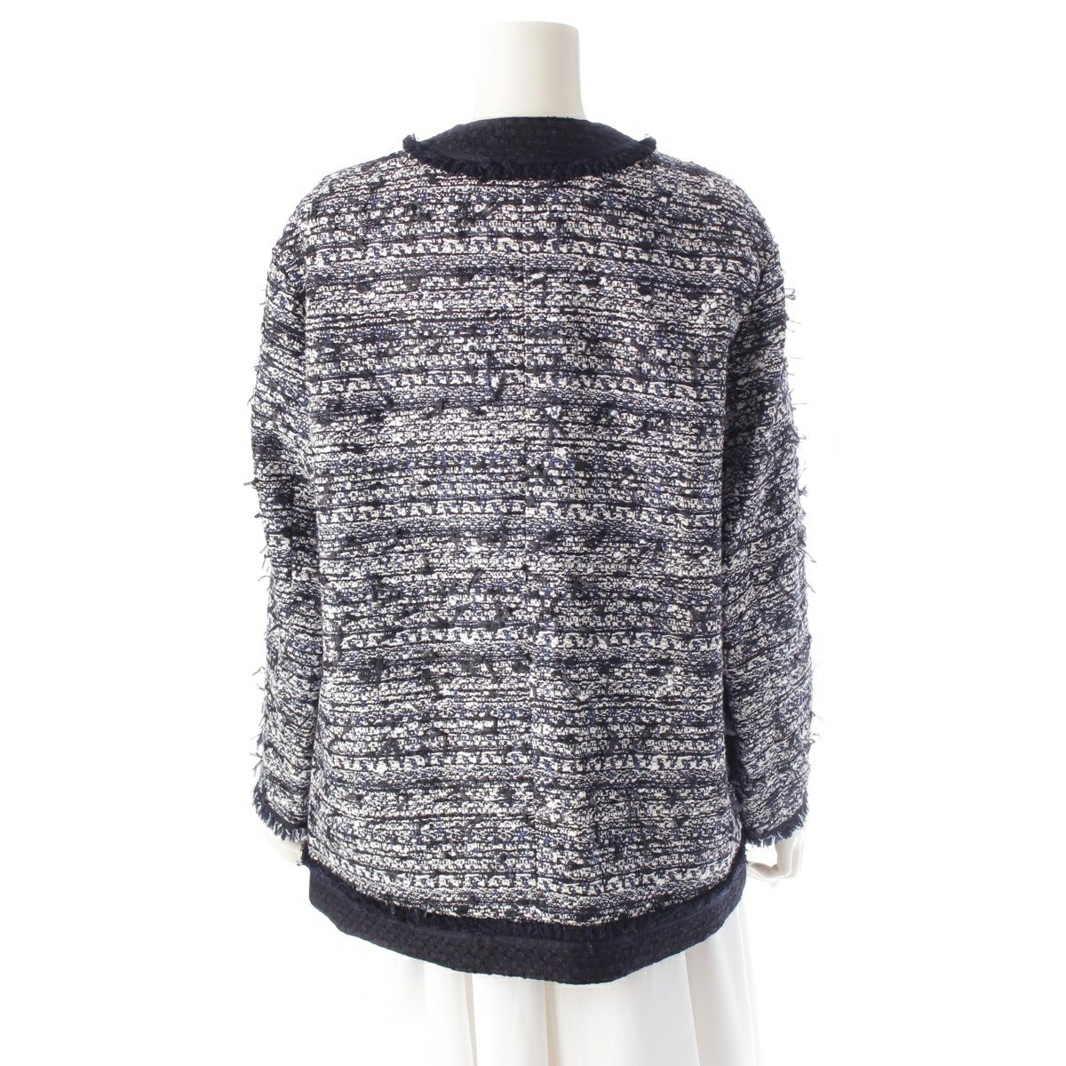 ドゥロワー 23SS コットン ファンシー ツイード ノーカラージャケット 6522-234-0756 ネイビー ホワイト 36