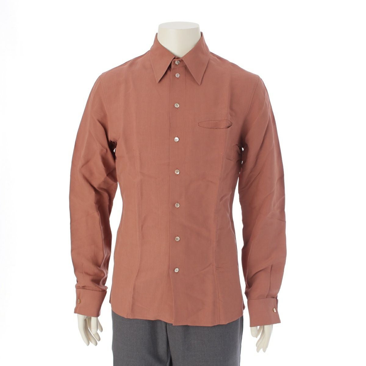 ジャンポールゴルチエ アーカイブ オム HOMME レーヨン 長袖シャツ シェルボタン ステッチデザイン レッド 48
