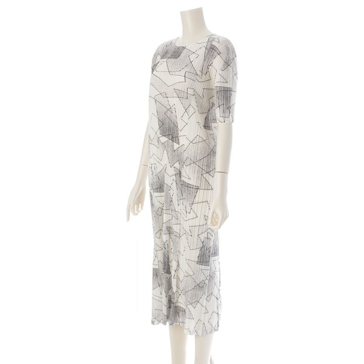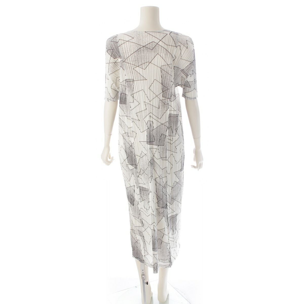 プリーツプリーズ イッセイミヤケ 2019 総柄 半袖 ワンピース ドレス PP91-JH756 ブラック ホワイト 3
