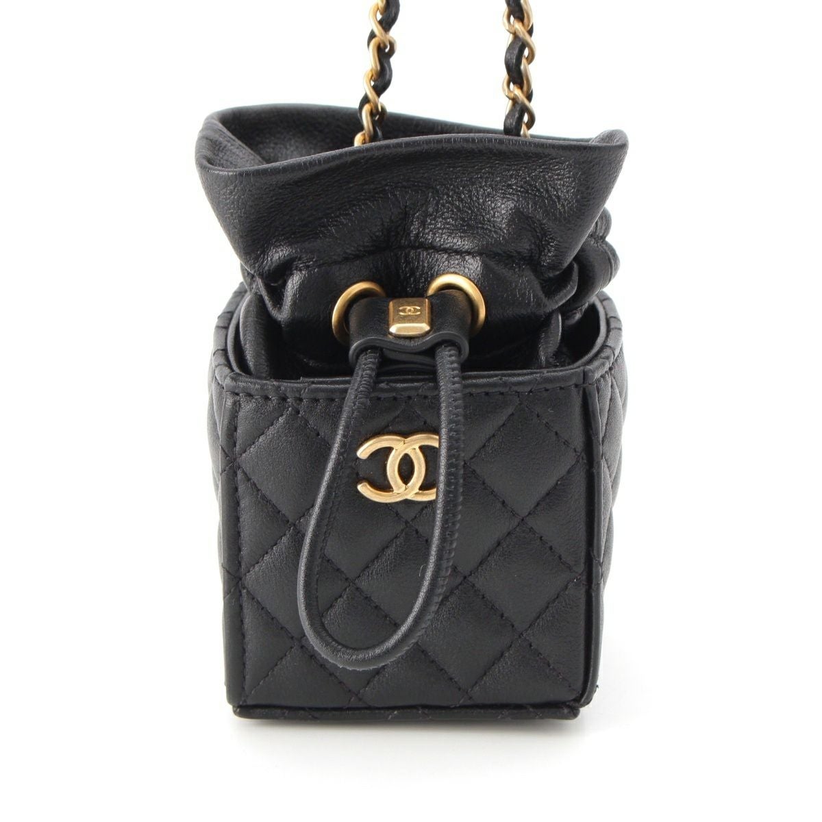 シャネル マトラッセ ラムスキン ミニキューブ 巾着 ショルダーバッグ ブラック