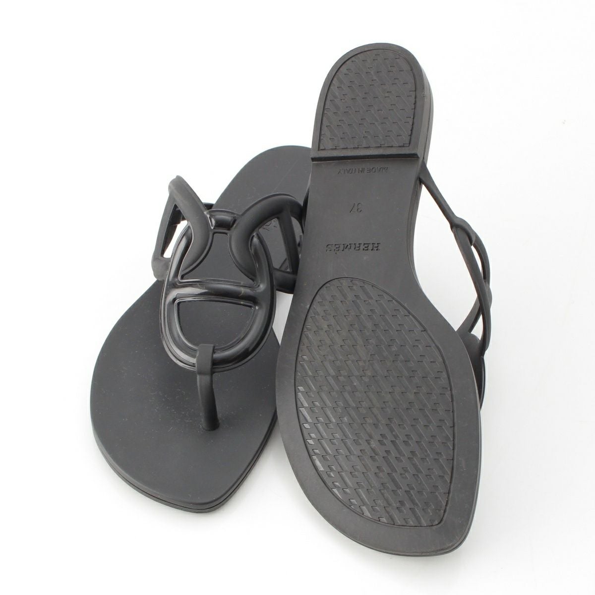エルメス エジェリ ラバー シェーヌダンクル サンダル ブラック 37
