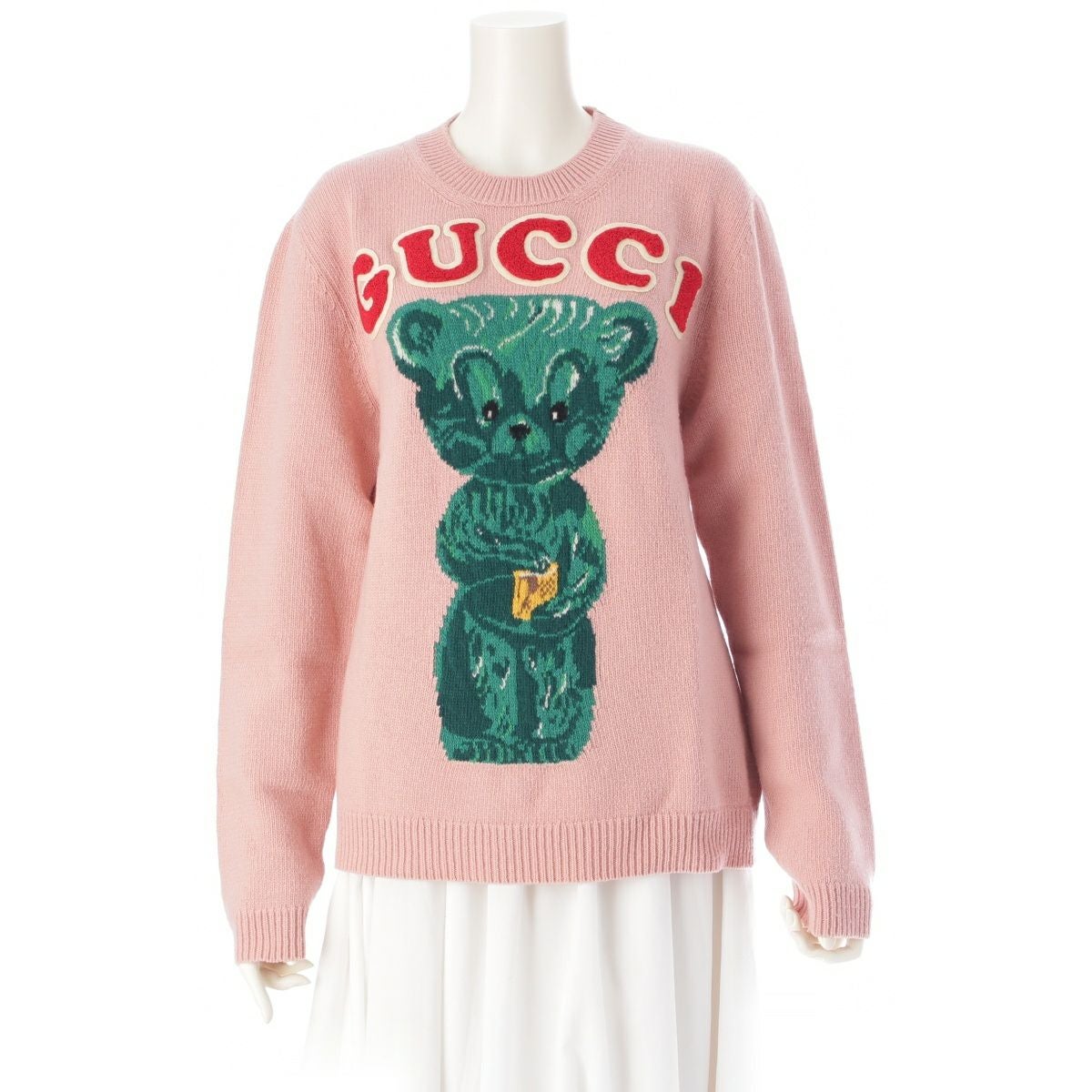 グッチ ウール ロゴ ベア クマ 長袖 ニット セーター トップス 523013 ピンク S