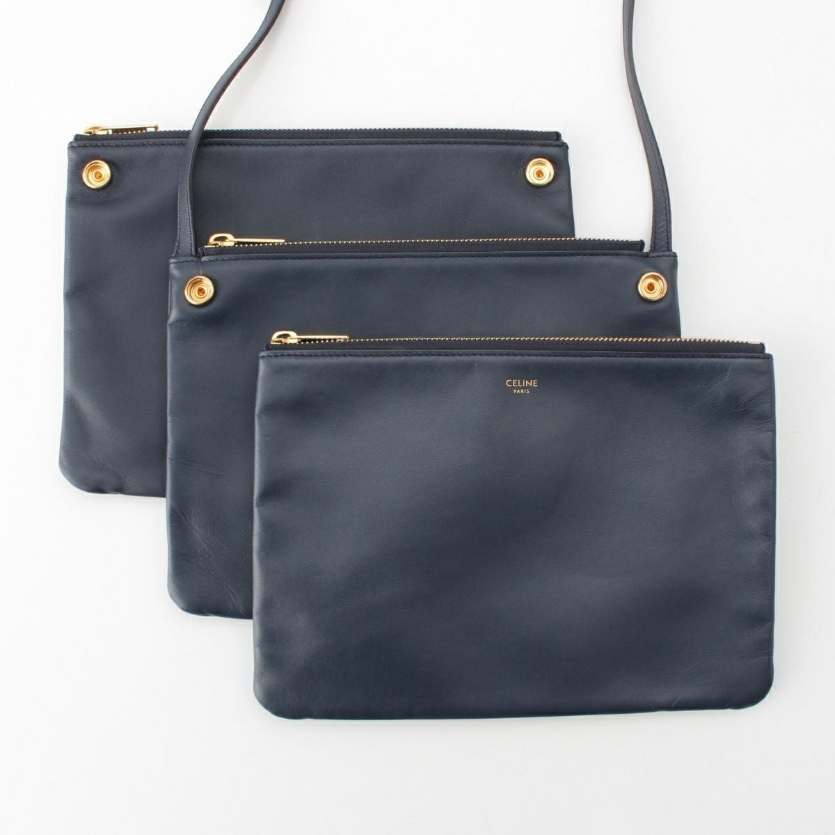 セリーヌ トリオ ラージ レザー ショルダーバッグ ネイビー