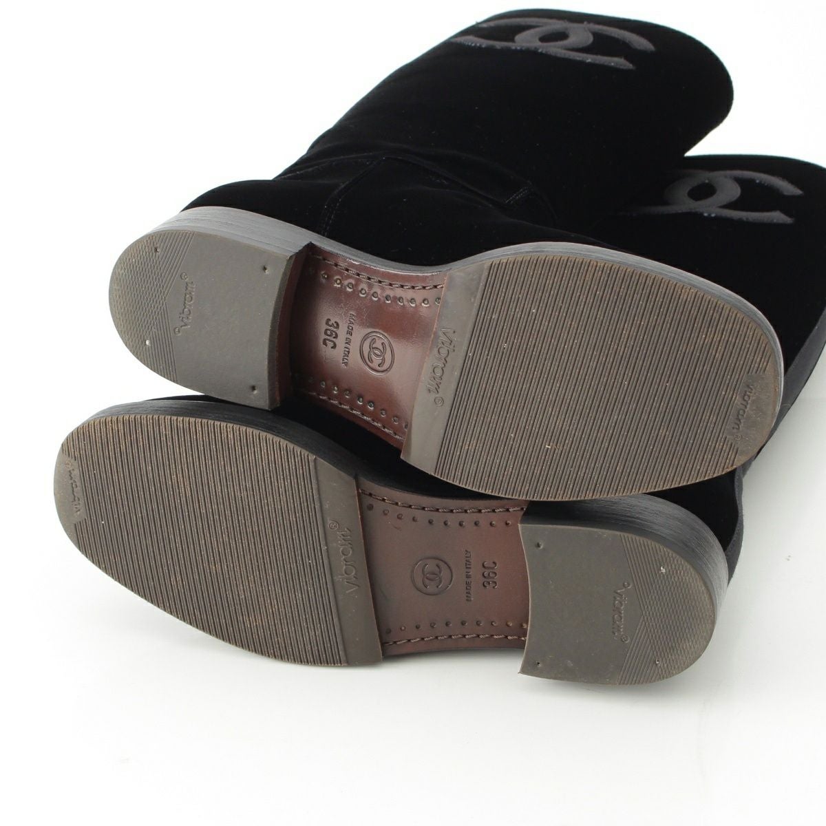 シャネル ベロア サイドココマーク ロング ブーツ ブラック 36
