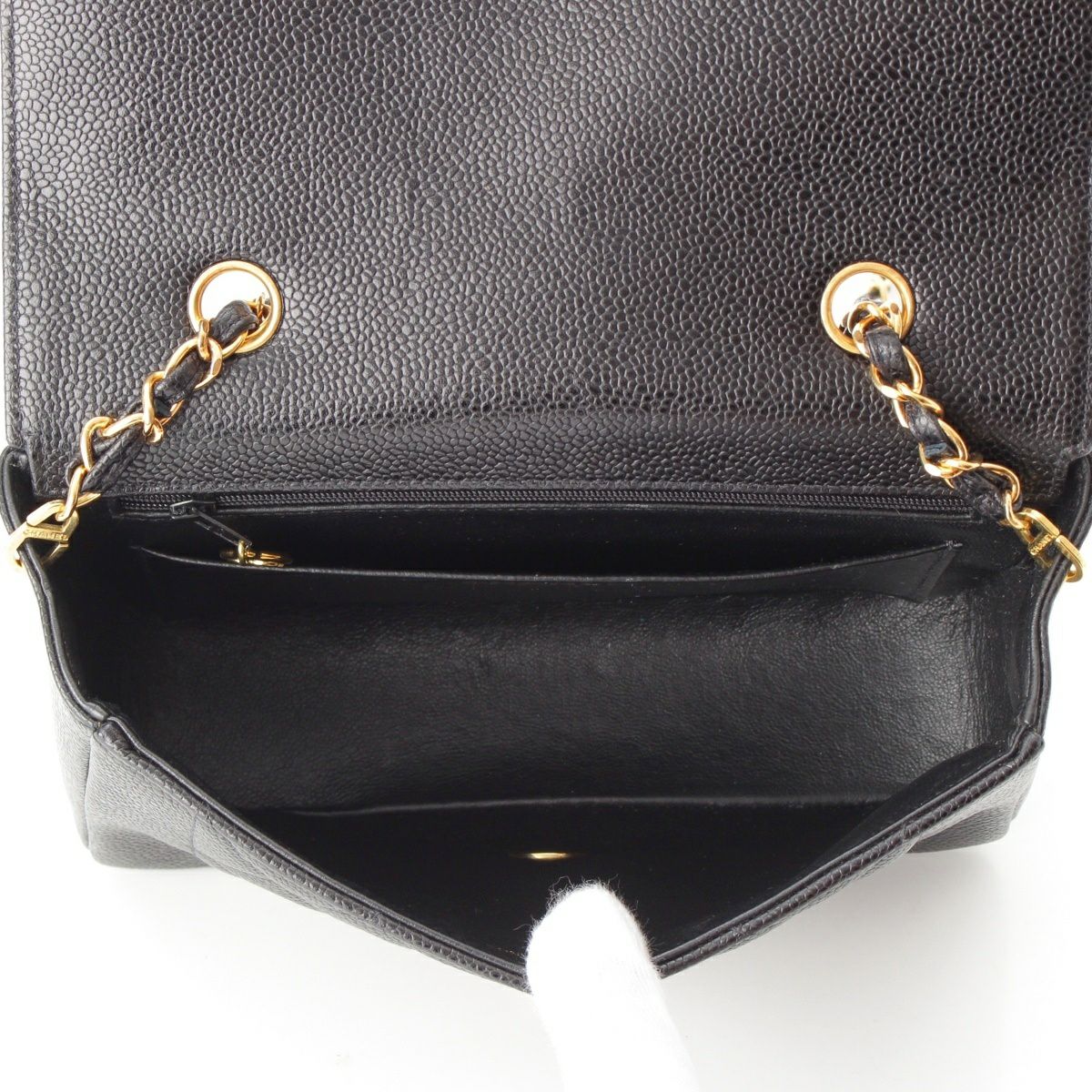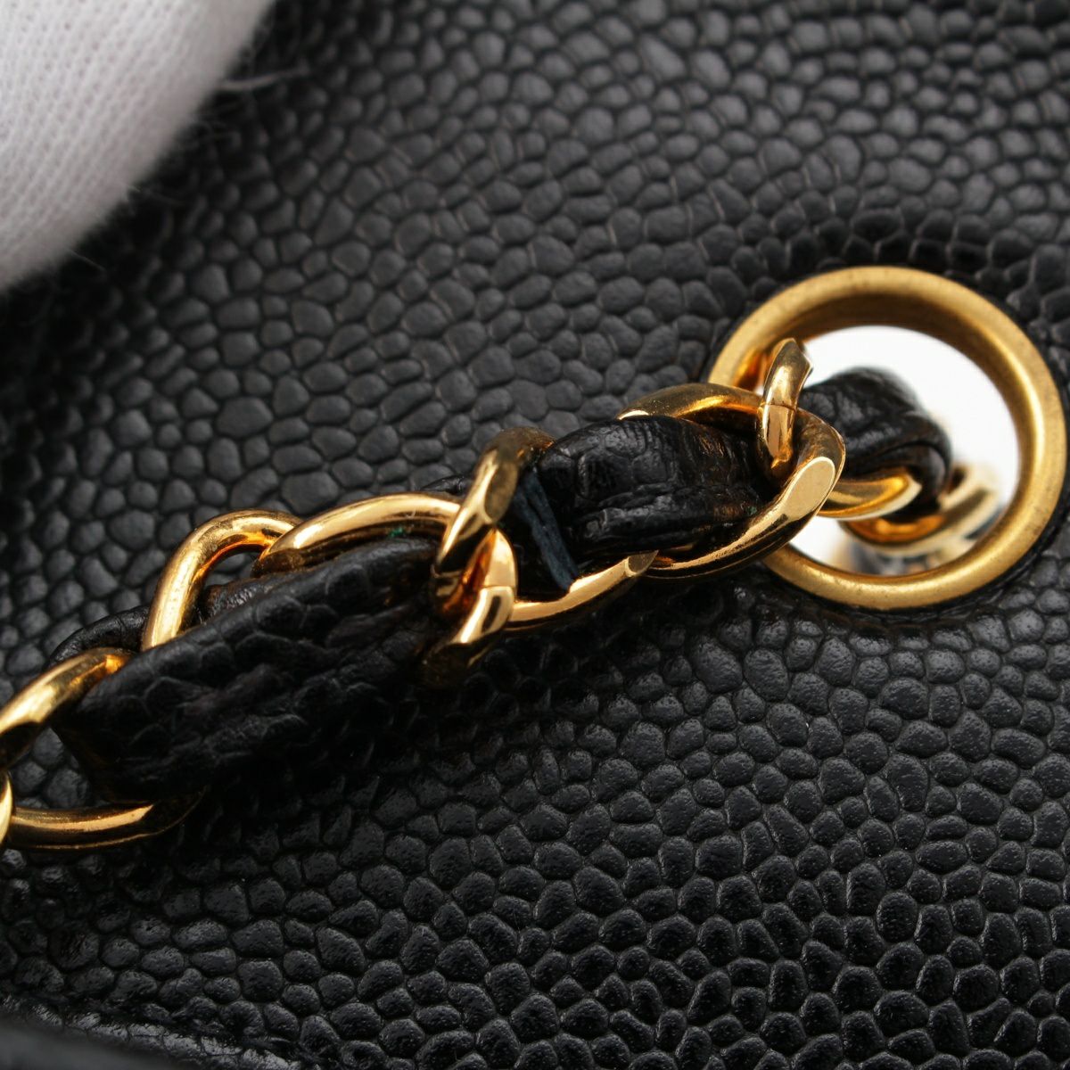 シャネル ダイアナ22 キャビアスキン ココマーク チェーン ショルダーバッグ ブラック×ゴールド