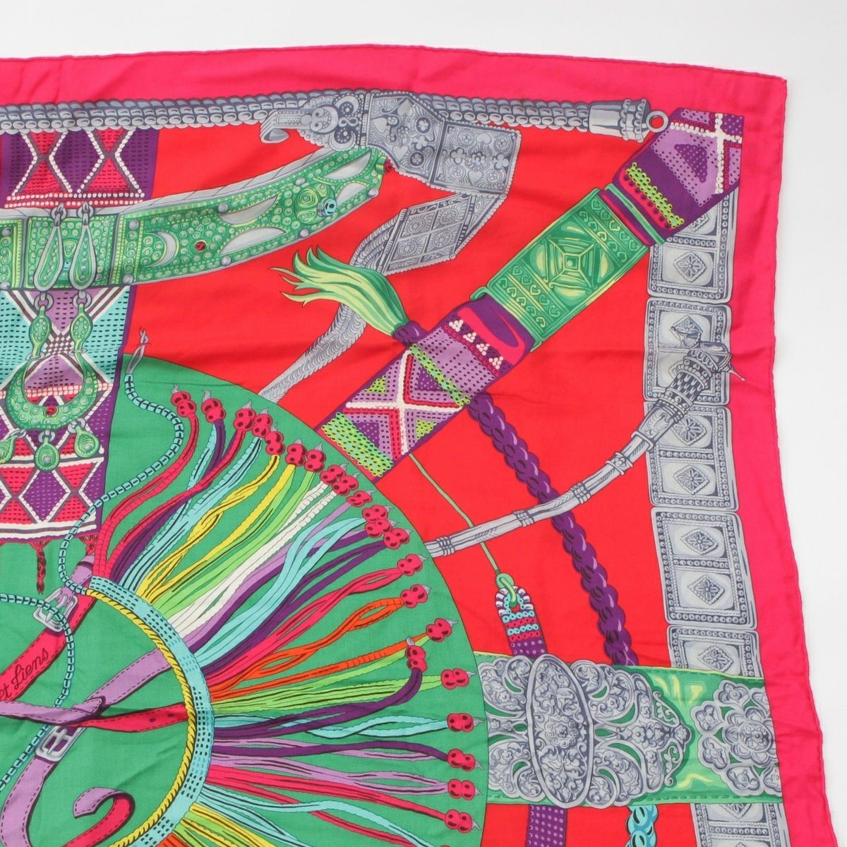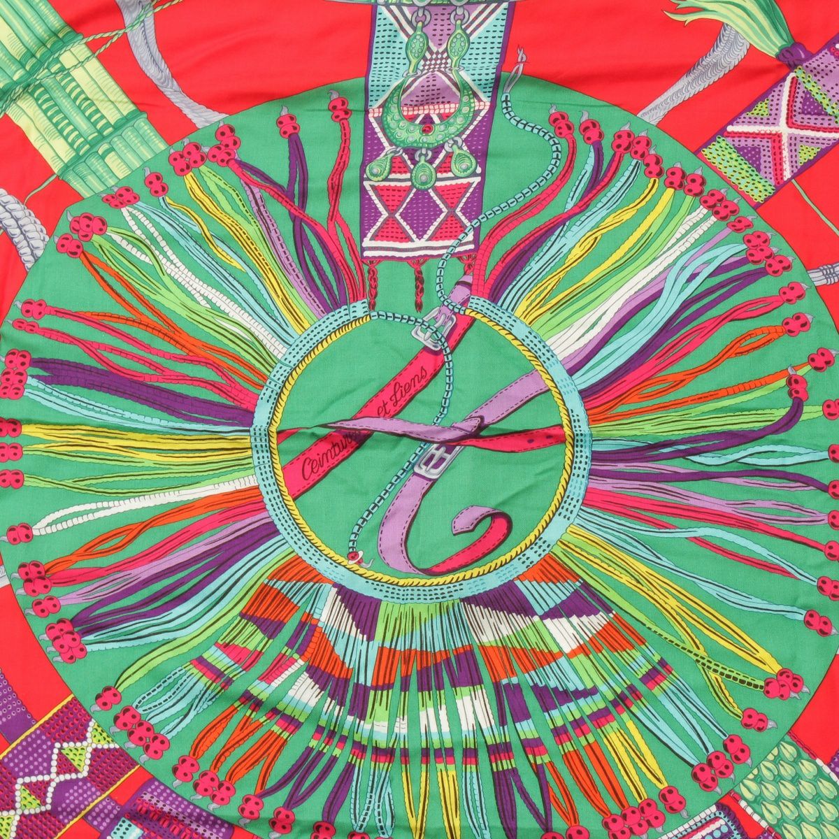 エルメス カレ140 カレジェアン Ceintures et Liens ベルトと紐 カシミヤ シルク ストール ピンク×グリーン