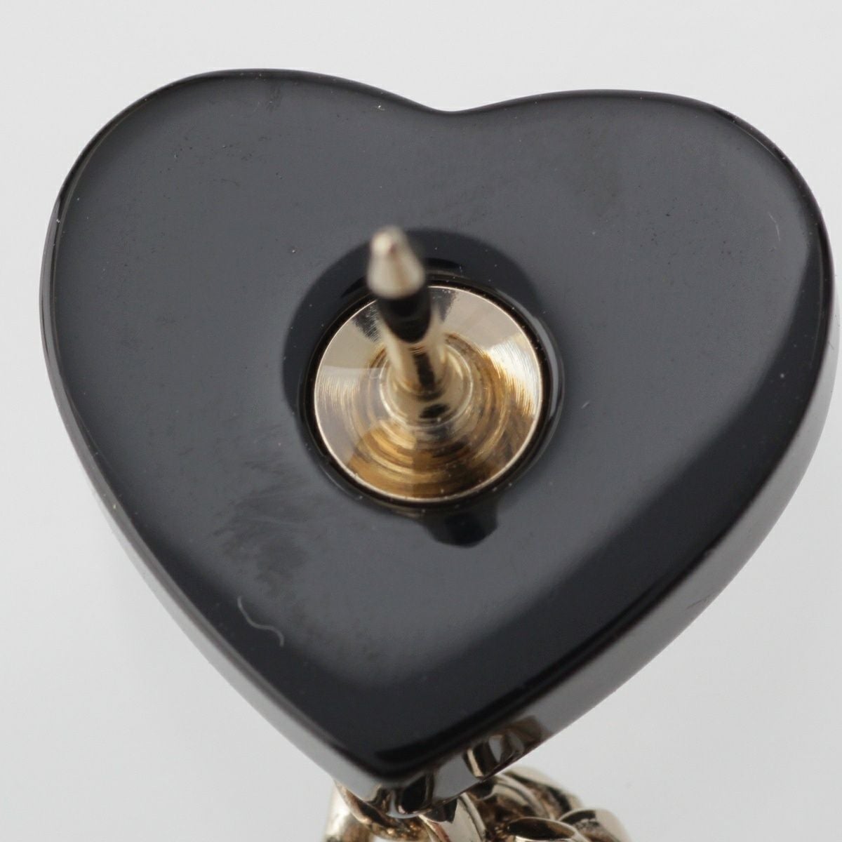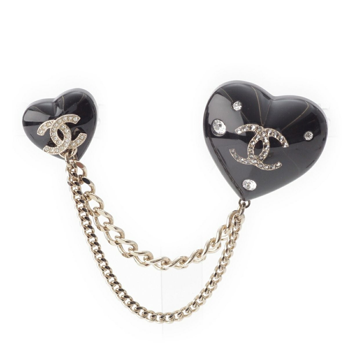 シャネル D22B ココマーク ハート ラインストーン チェーン ピン ブローチ アクセサリー ブラック