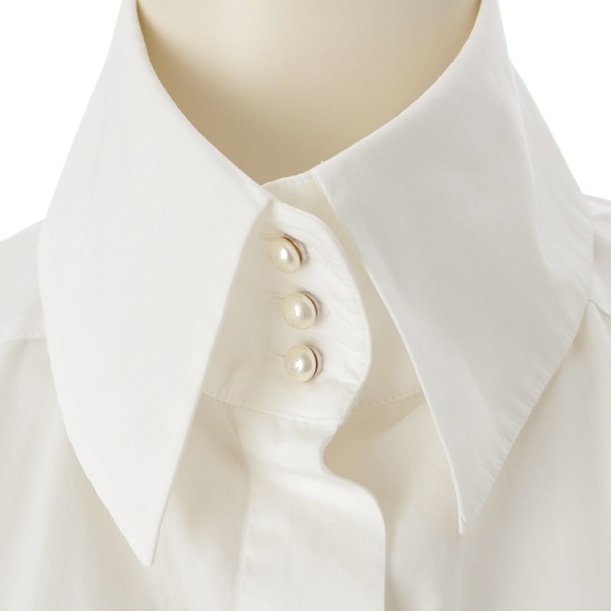 シャネル 04A コットン パール ノースリーブ ブラウス トップス P24142 ホワイト 38