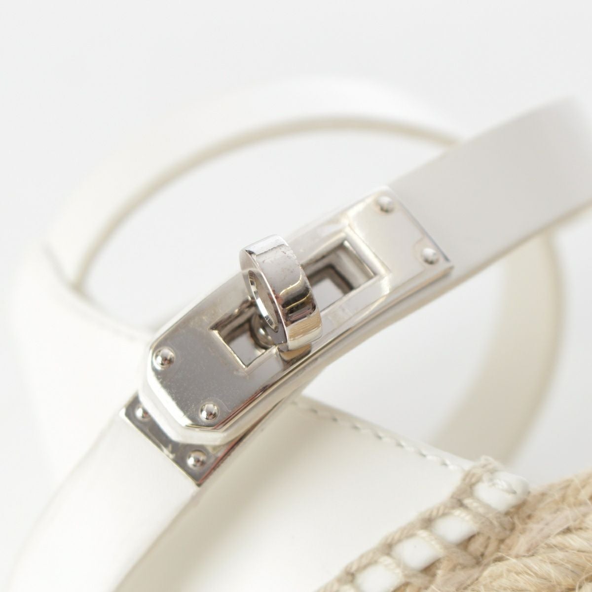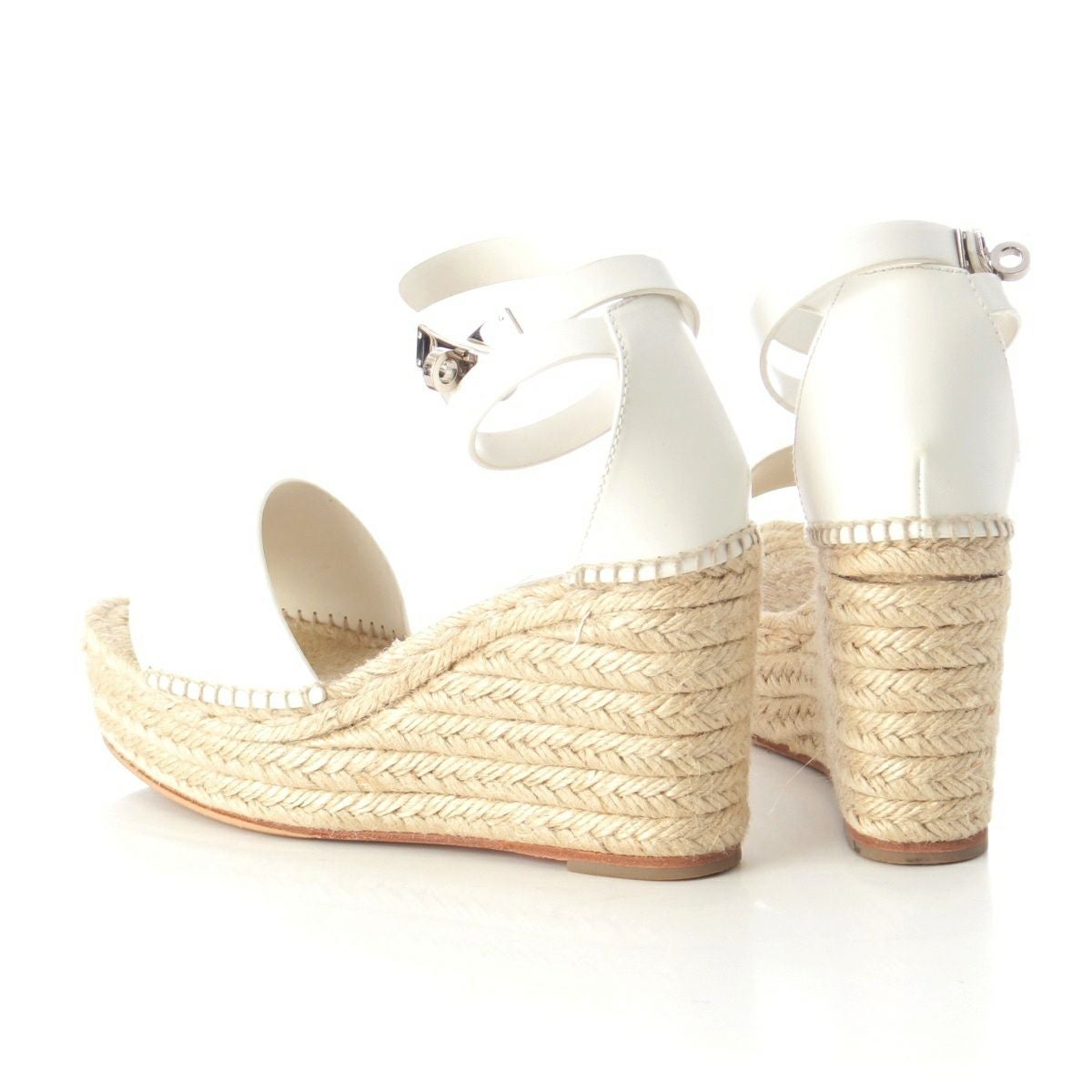 エルメス ティポリ レザー ケリー金具 ウェッジソール エスパドリーユ サンダル シューズ ホワイト 36