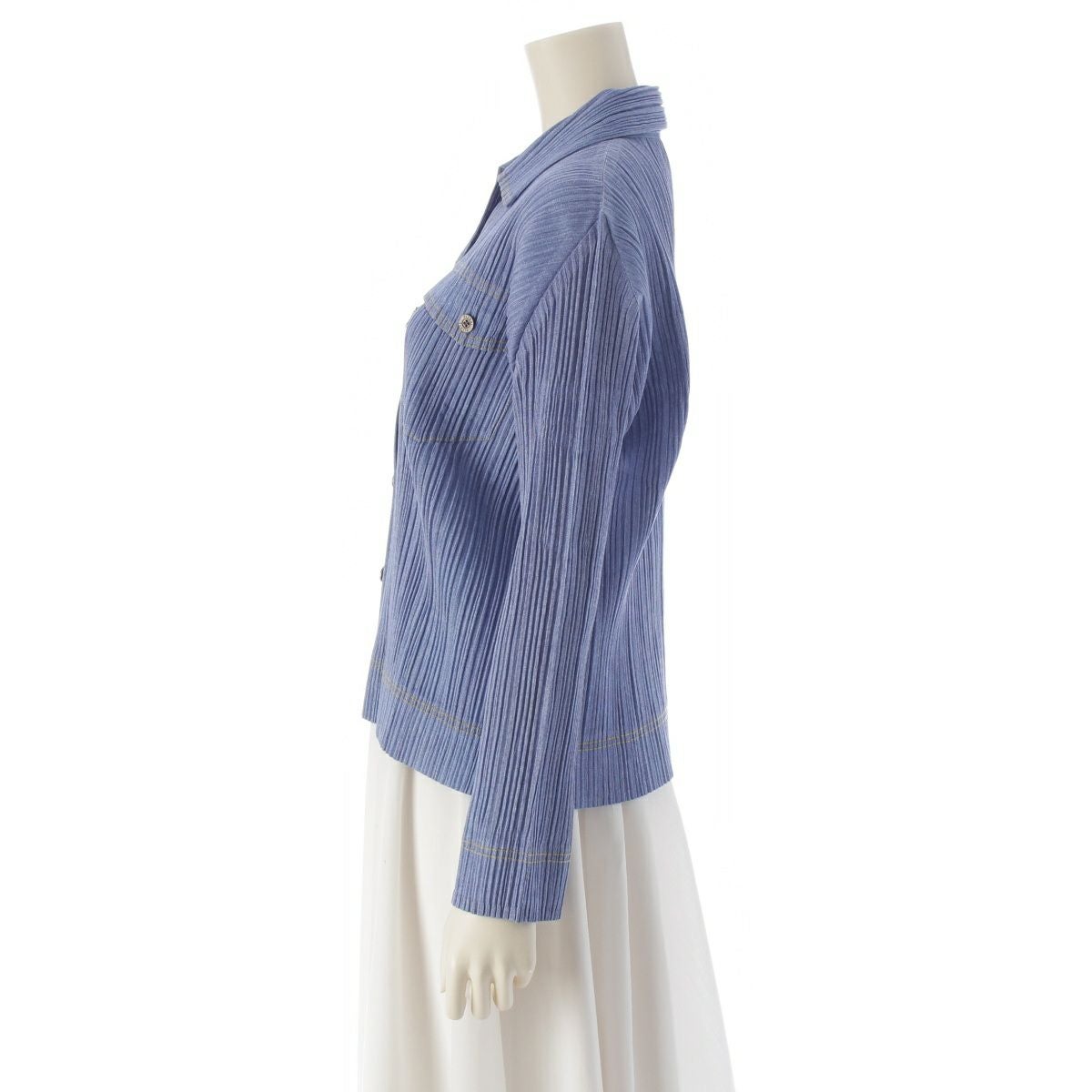 プリーツプリーズ イッセイミヤケ コットン混 デニム シャツ トップス PP71-JD621 インディゴ 3