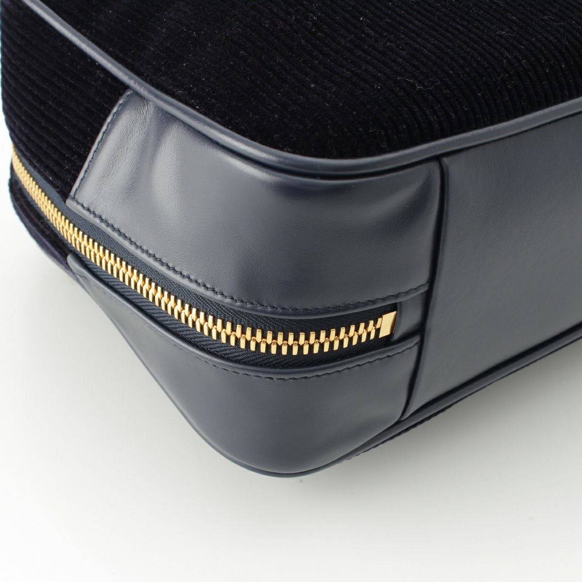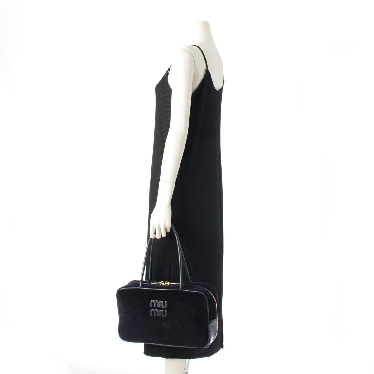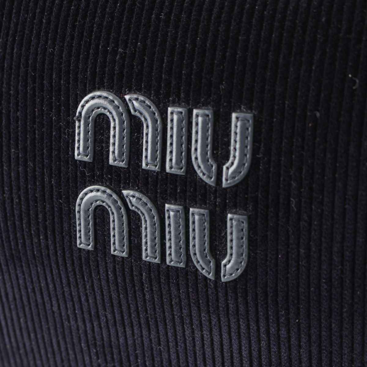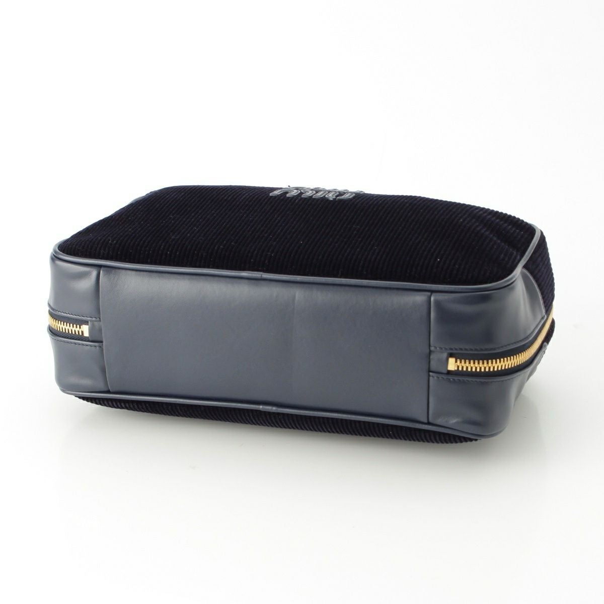 ミュウミュウ ボー コーデュロイ ロゴ トップハンドル ボストンバッグ 5BB163 ネイビー