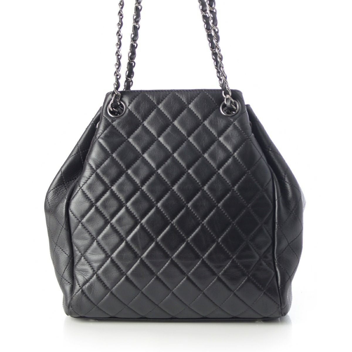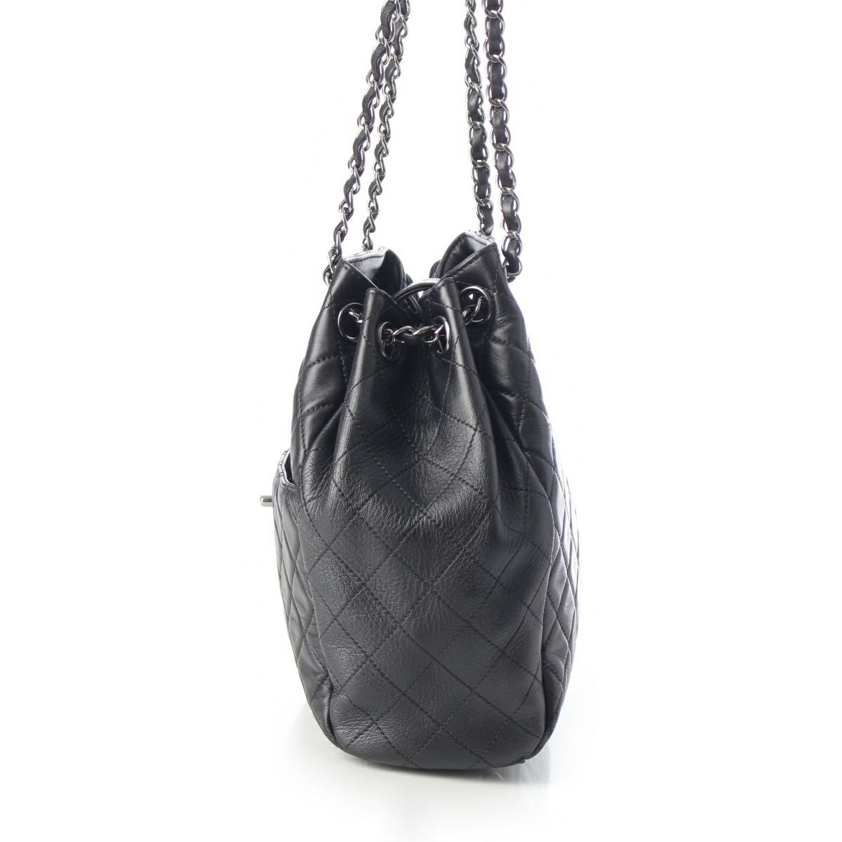 シャネル 23番台 ラムスキン マトラッセ 巾着 シルバー金具 チェーン バケット ショルダーバッグ ブラック