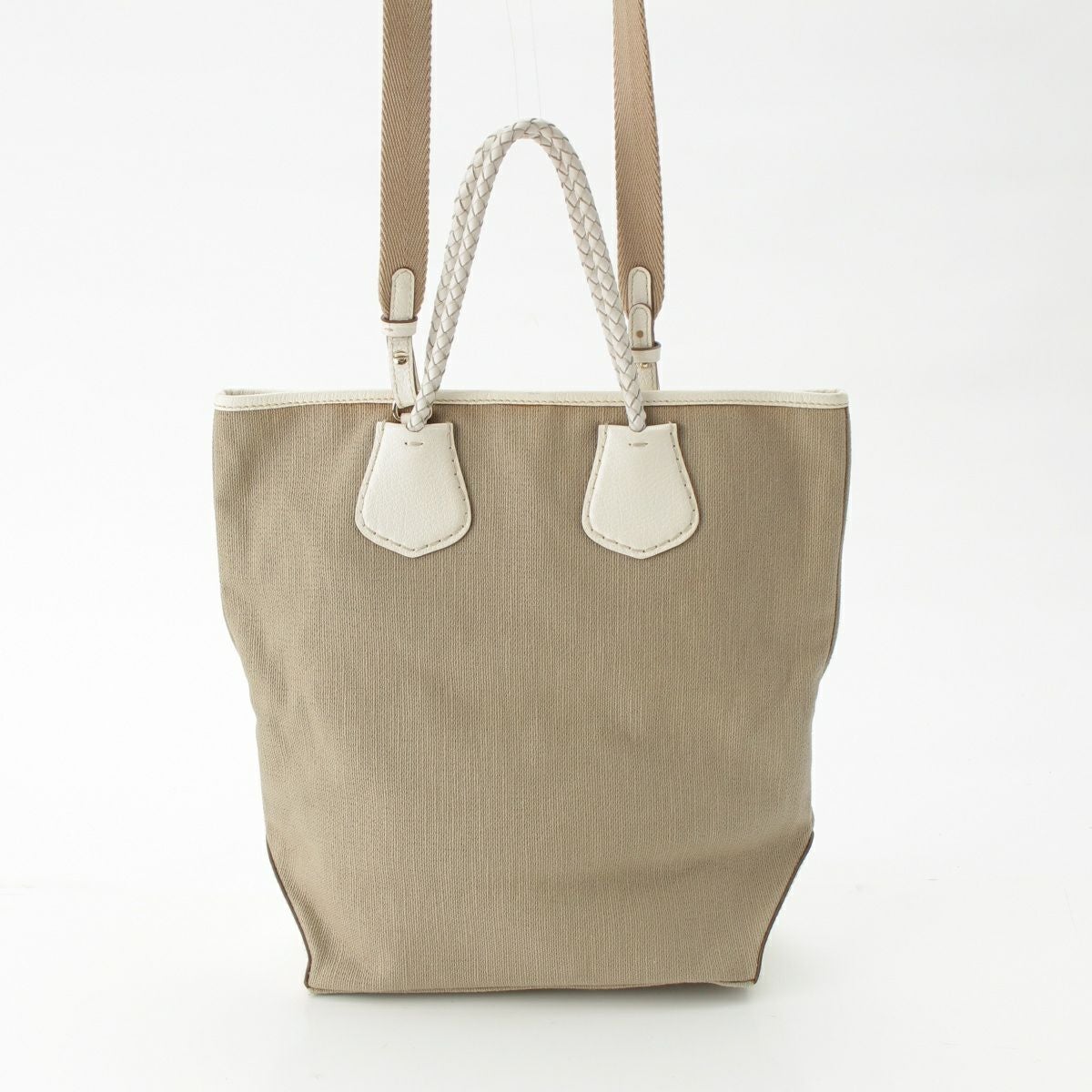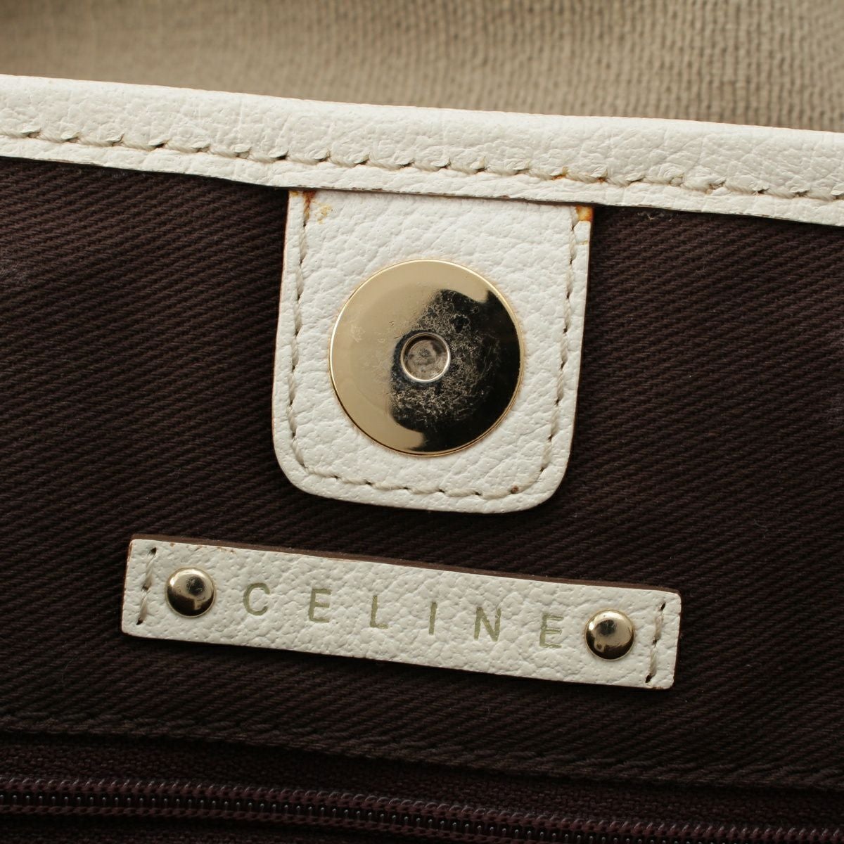 セリーヌ キャンバス×レザー マカダム タートル 2WAY ショルダー トートバッグ ホワイト×ベージュ