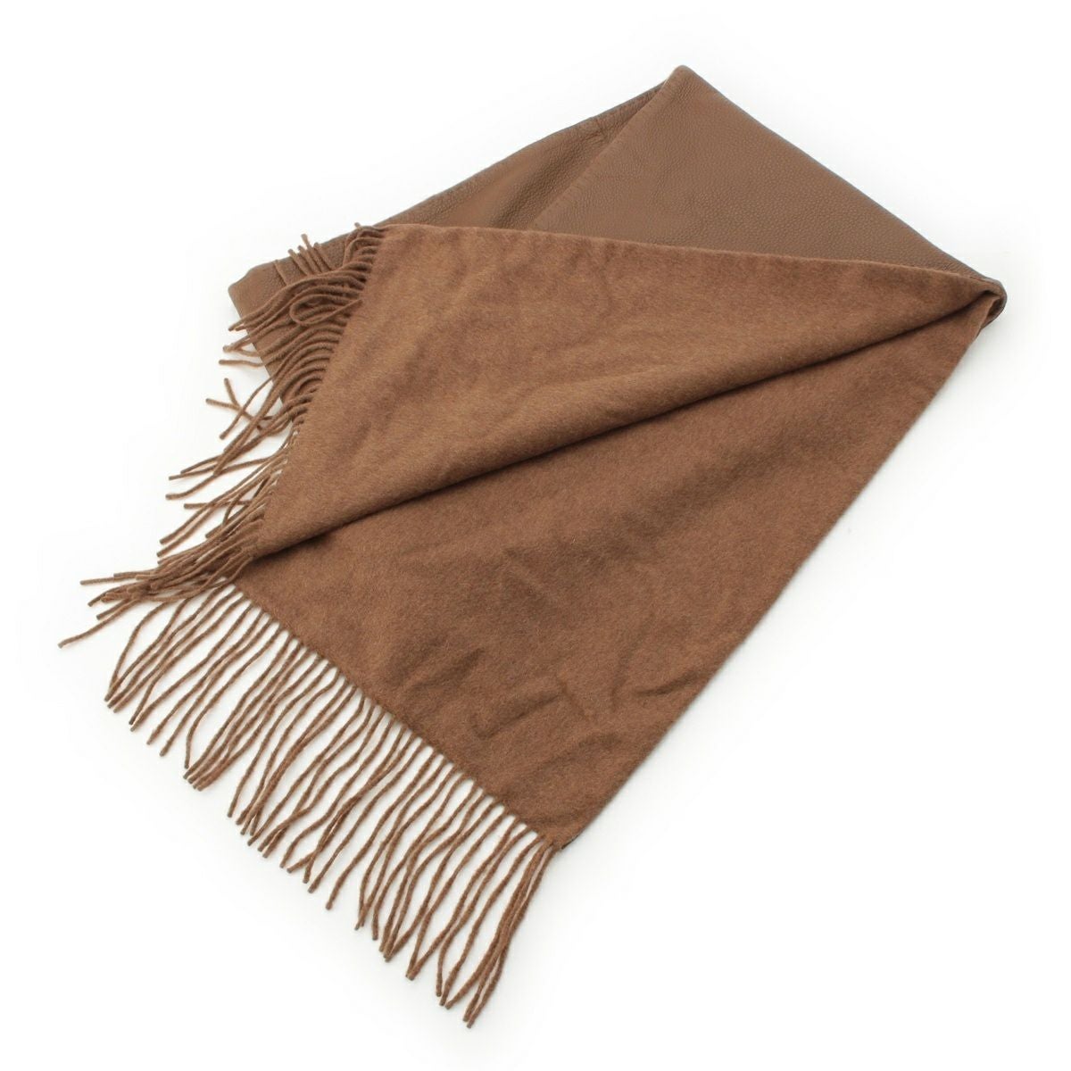 エルメス 鹿革 ディアスキン×カシミヤ ゴルチエ期 ダブルフェイス フリンジ ロング マフラー ブラウン