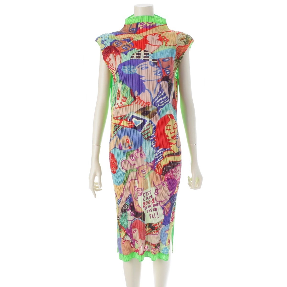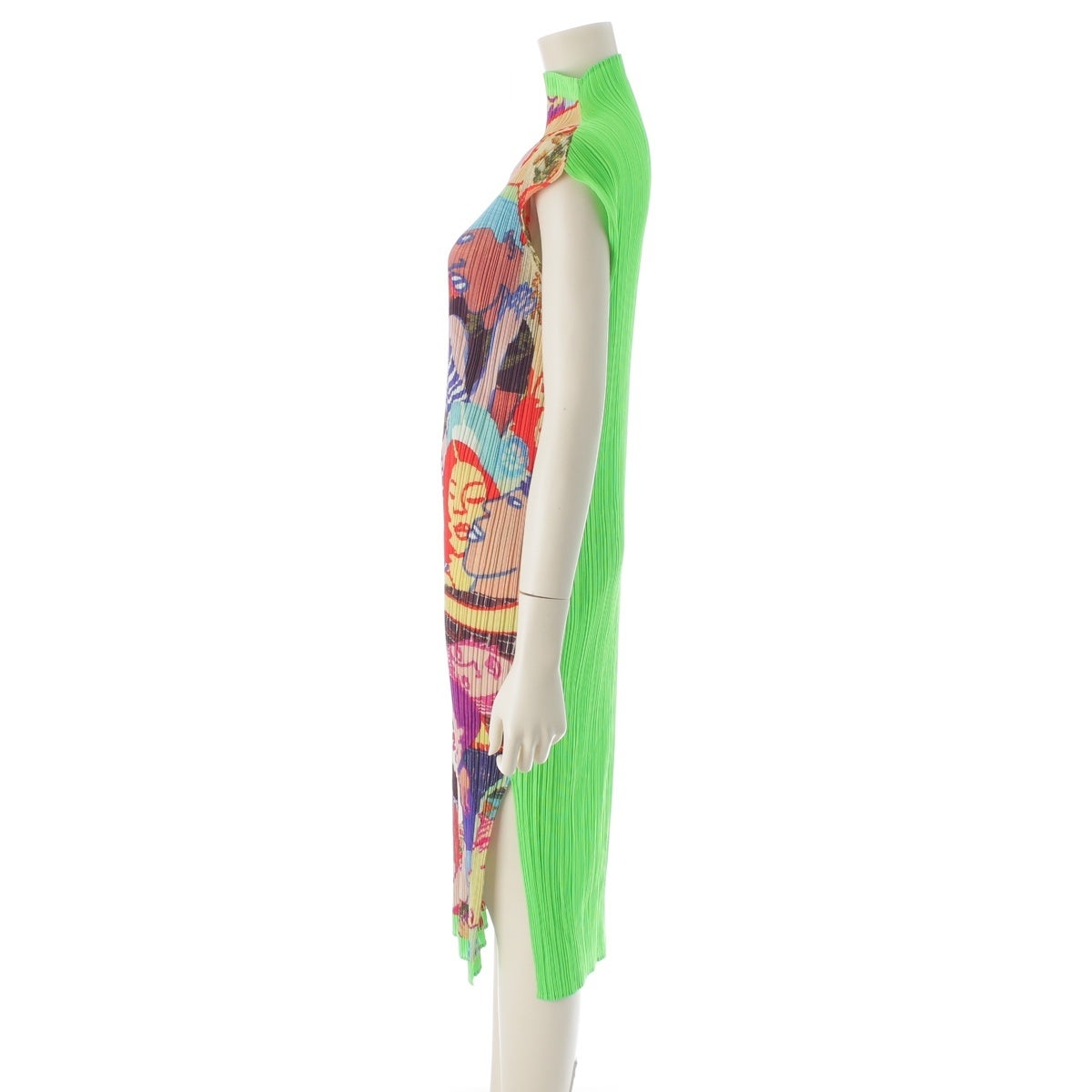 プリーツプリーズ イッセイミヤケ Lamia Ziade グラフィティ 総柄 ボトルネック ノースリーブ ワンピース ドレス PP12-JH221 グリーン 4