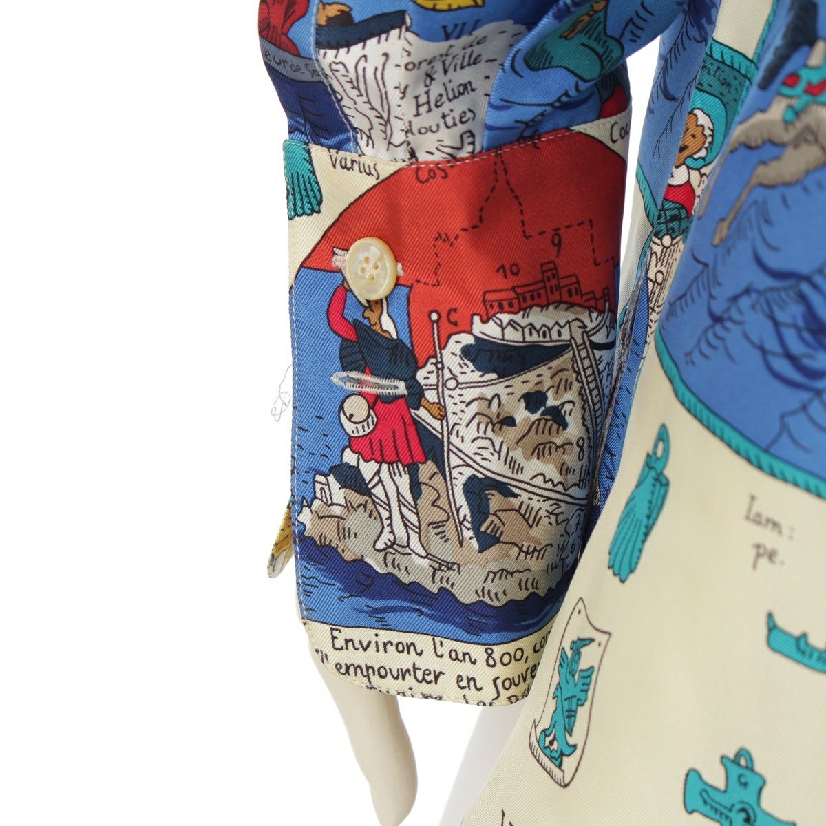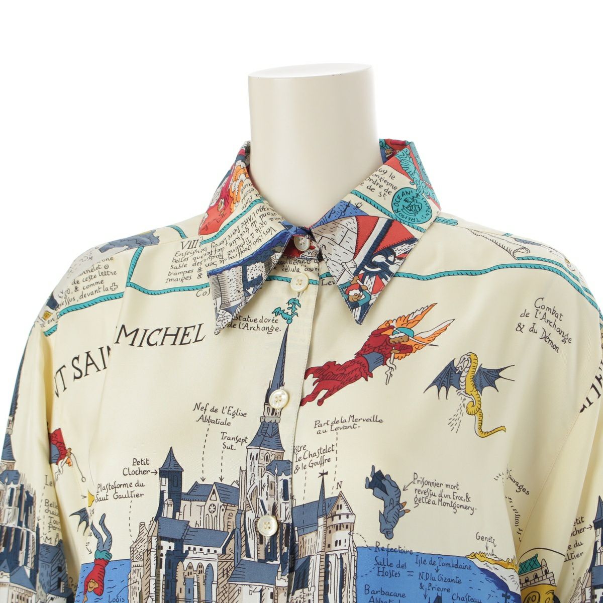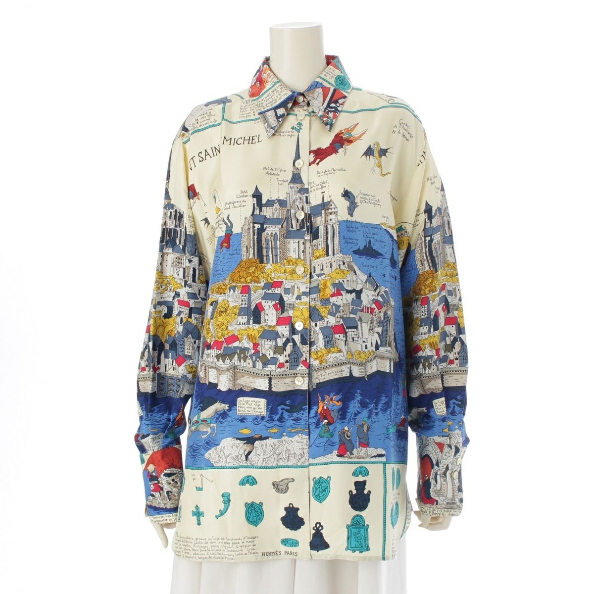 エルメス Mont Saint Michel モンサンミッシェル シルク 長袖シャツ トップス アイボリー マルチカラー 40