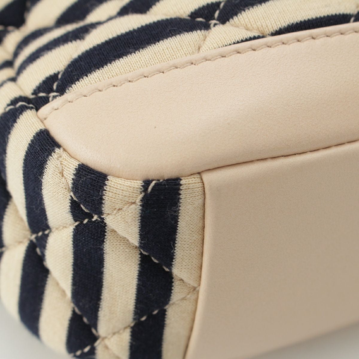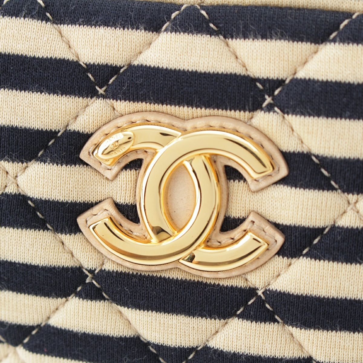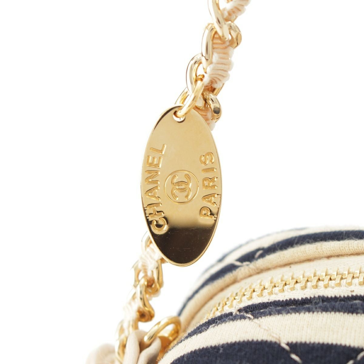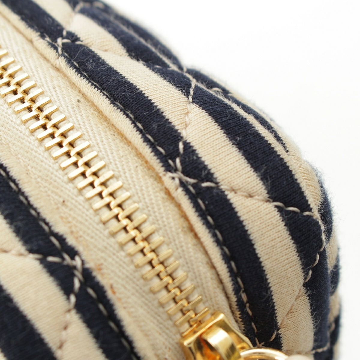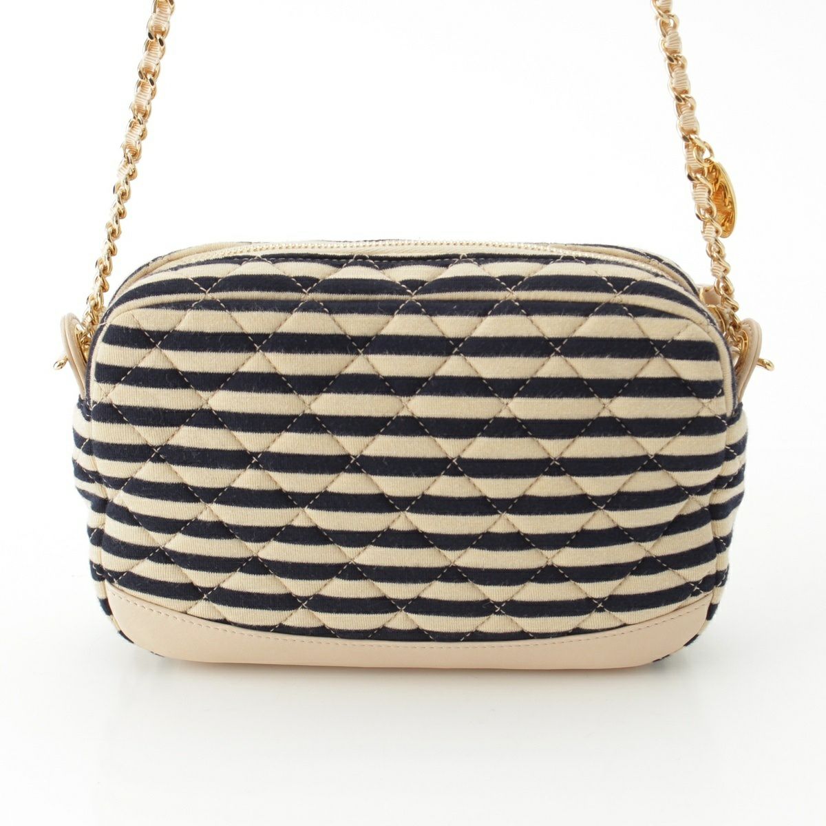 シャネル コットン 18番台 ココマーク ボーダー チェーン ショルダーバッグ ポーチ ネイビー×ベージュ