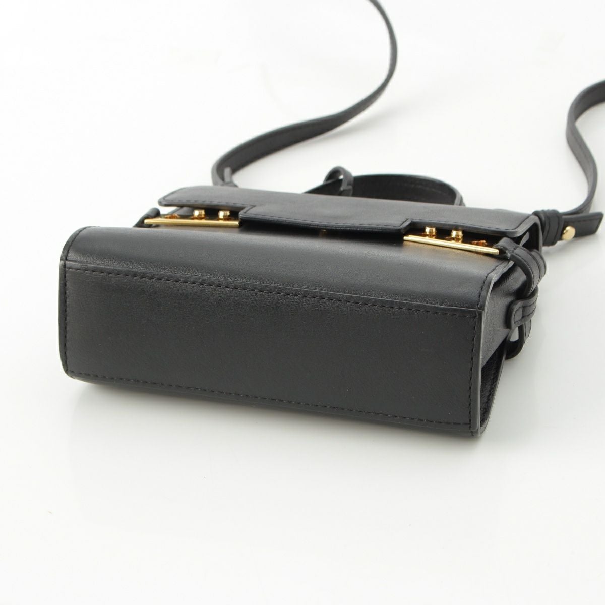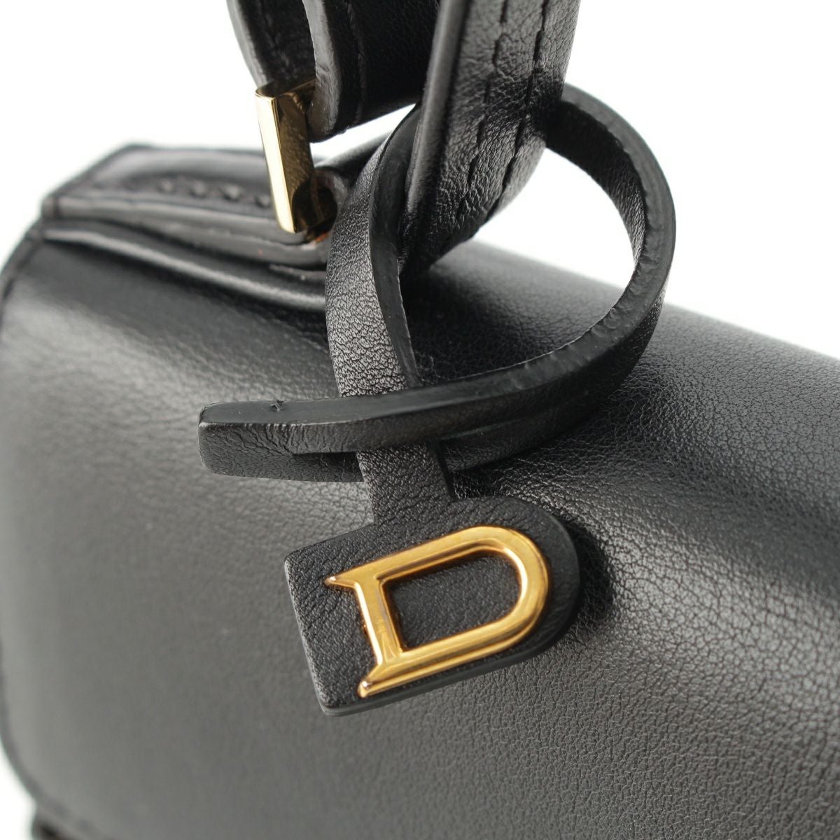 デルヴォー タンペートミニ レザー 2way ショルダー ハンドバッグ ブラック×ゴールド