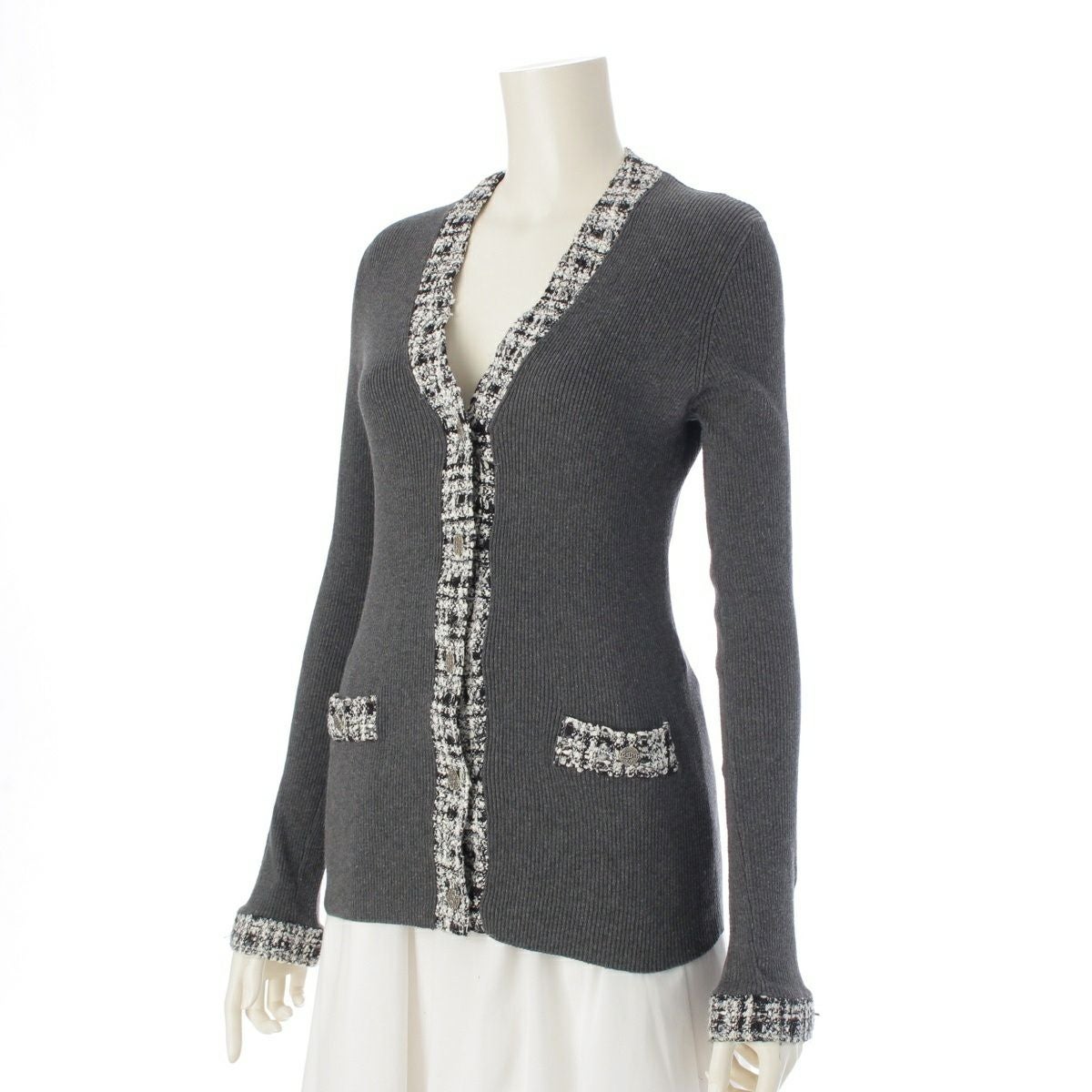 シャネル 04P コットン ココマーク ツイード ニット カーディガン トップス P23598 グレー 40