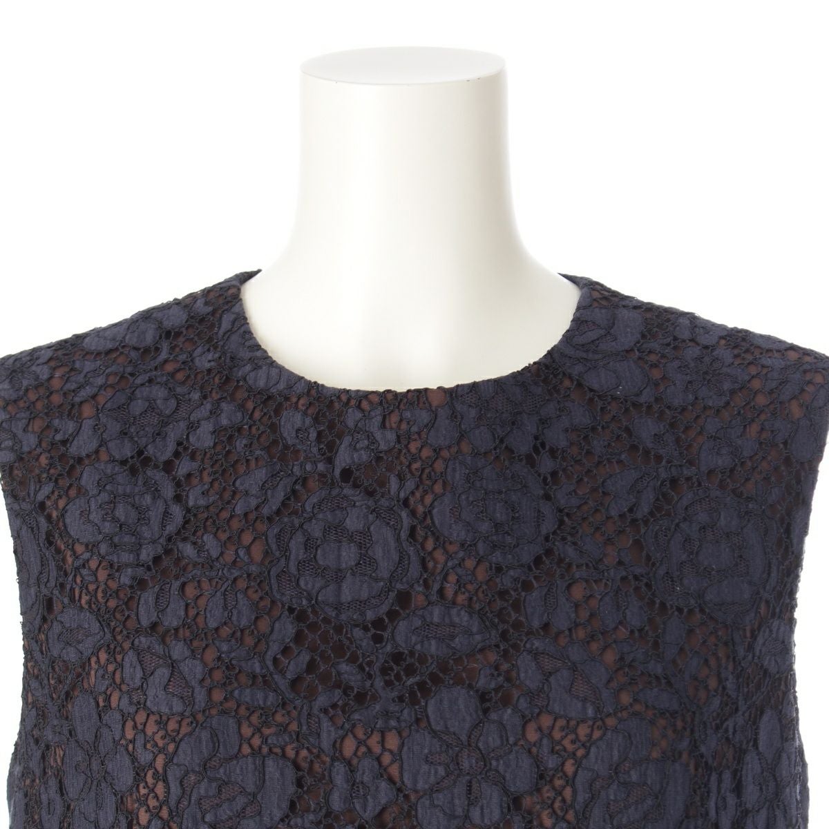 フォクシー 花柄刺繍 ノースリーブ ワンピース 40987 ネイビー×ブラウン 40